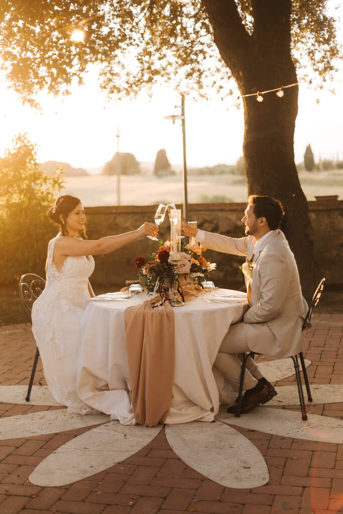 Os noivos devem ficar no centro da mesa, sendo que a noiva fica do lado direito e o noivo do lado esquerdo.
