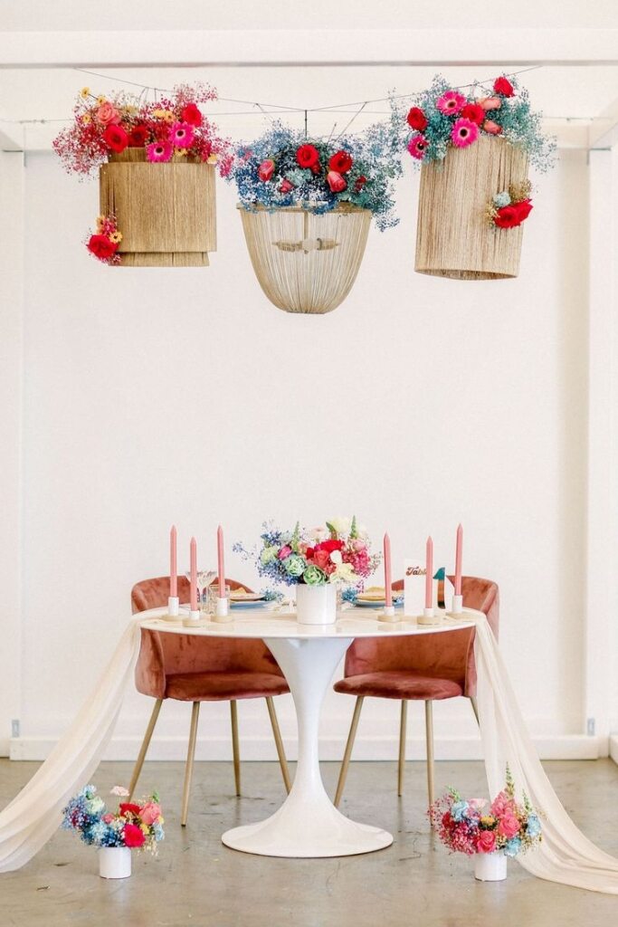 Mesa dos noivos colorida