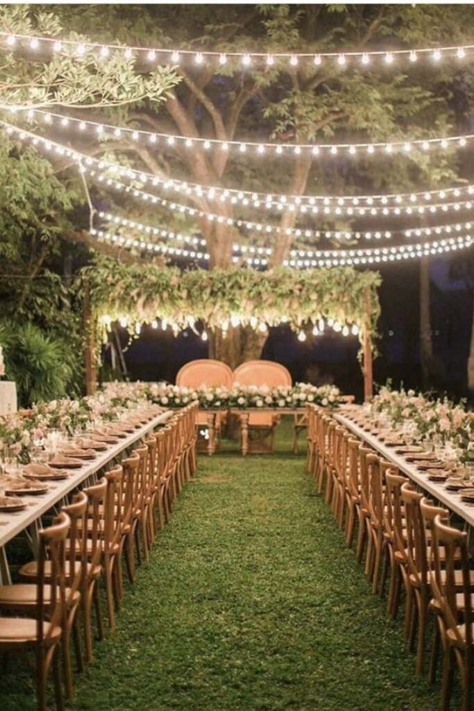 Por outro lado, o chic envolve flores delicadas, muitas luzinhas, elementos em vidro e dourado.