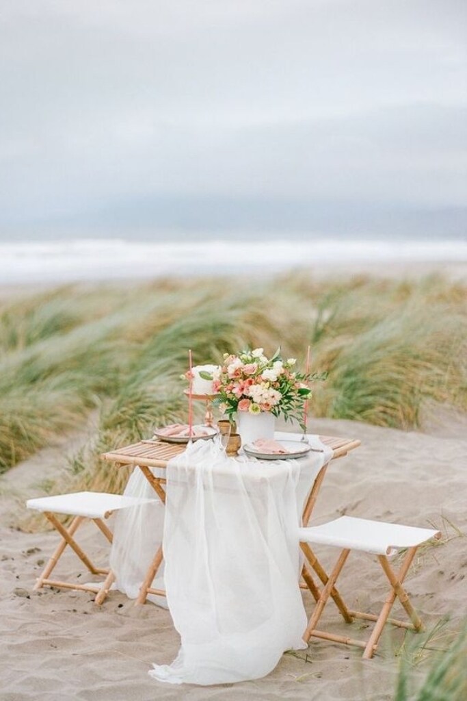 Se você sonha com um casamento pé na areia, saiba que é possível montar a mesa dos noivos.