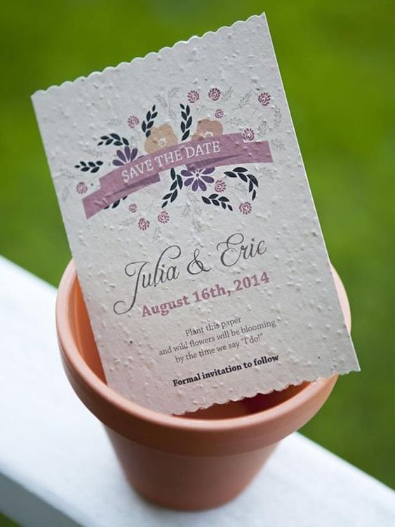 - Optar por convites que possam ser reutilizados após o casamento ecológico é uma boa pedida, assim como usar papéis recicláveis ou com base de fibras naturais, e dar preferência às impressões por toner ou serigrafia.