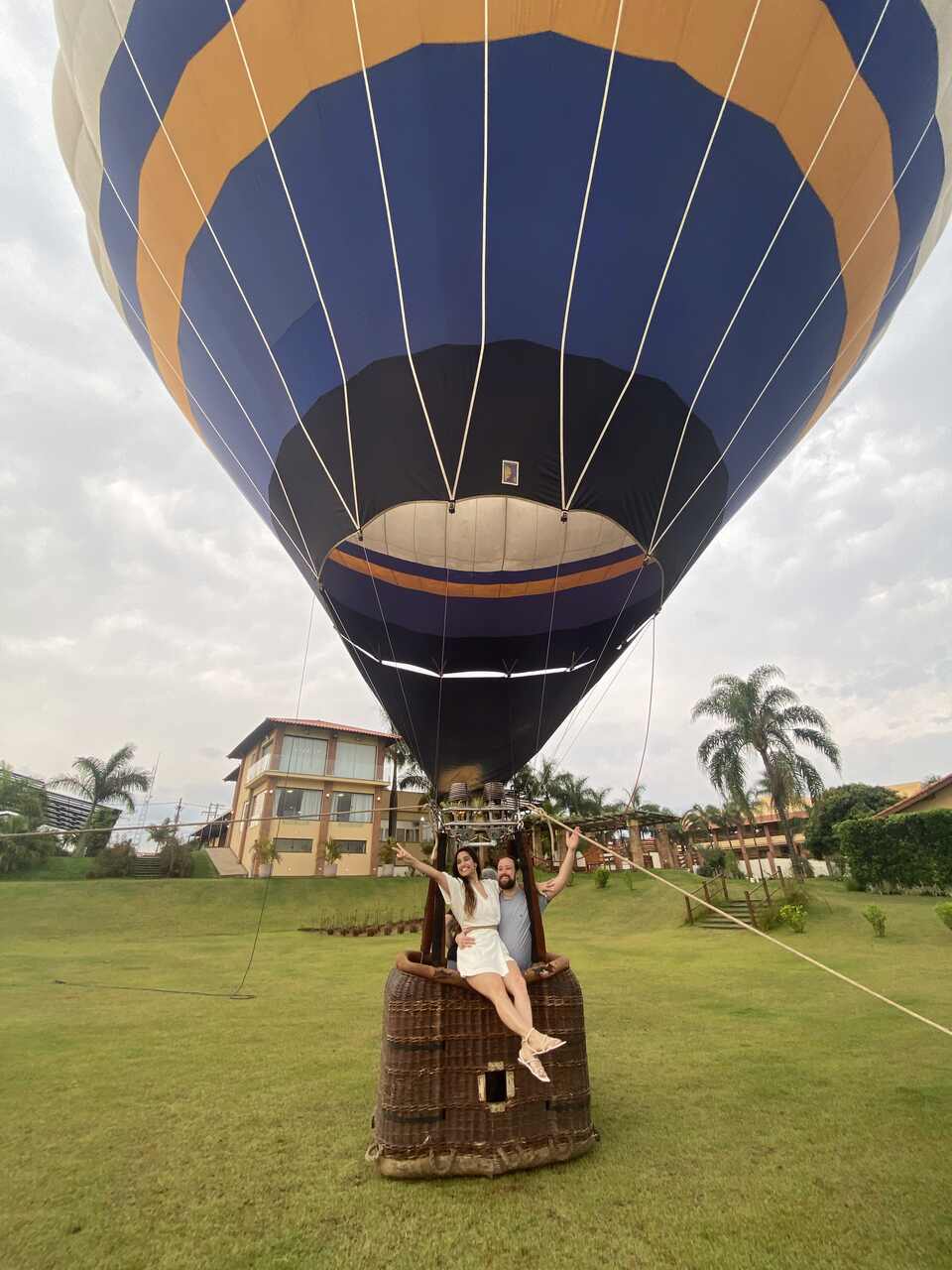 Após o almoço, para dar uma acelerada nas aventuras, os noivos contrataram uma experiência imersiva dentro de um balão a gás. Não bastasse isso, o interior do balão virou quase um estúdio de fotos!