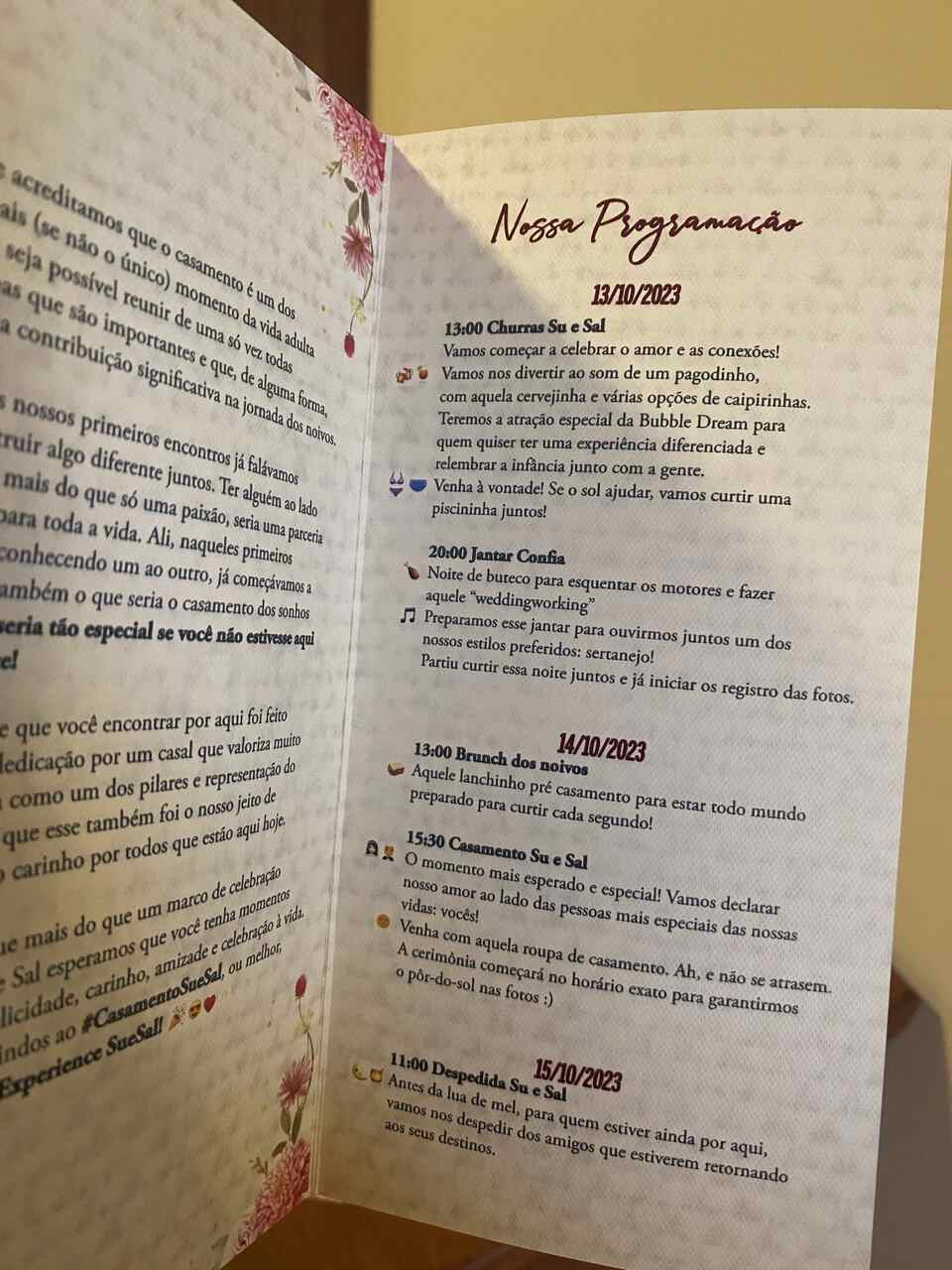 Programação Wedding Experience – Su & Sal