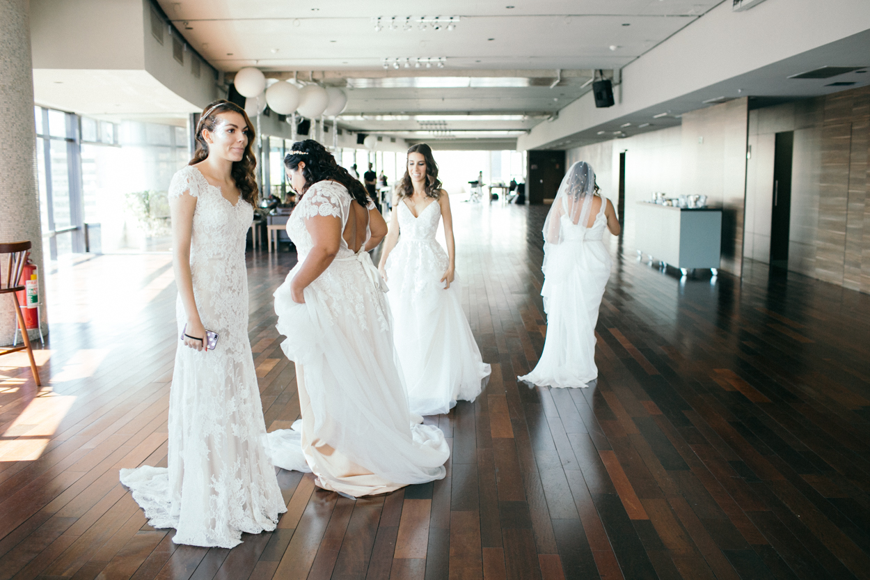 Todos os nossos vestidos Noiva nas Nuvens; cada uma escolheu o seu preferido de acordo com o gosto e personalidade direto do atelier. Quem assinou a nossa beleza foi a Marília Terrone e equipe, e os nossos acessórios maravilhosos só poderiam ser do Atelier Girardi.