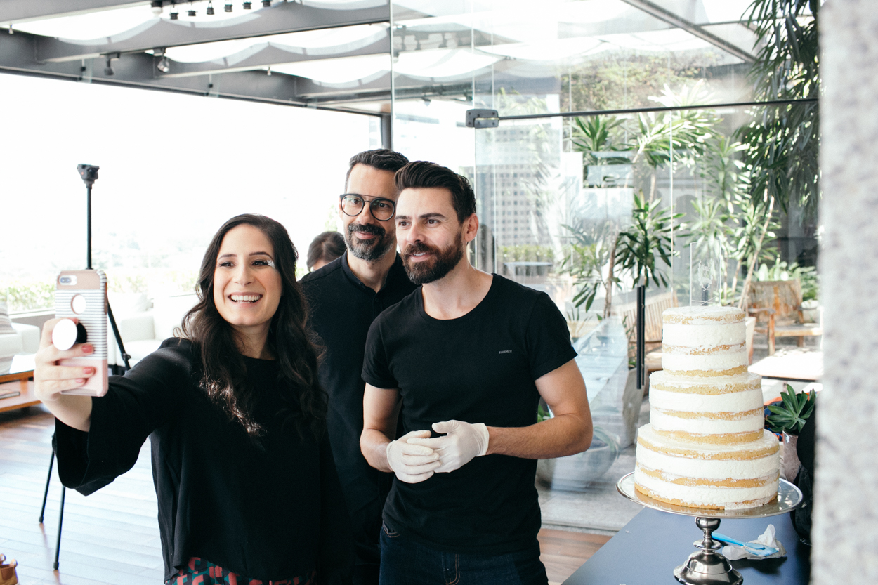 E em festa de verdade não pode faltar bolo, né? A Dadux preparou um naked cake de três andares lindo e igualmente delicioso. Para compor, topo de bolo, placa em acrílico e papelaria do Estúdio Pinus produzida especialmente para o nosso aniversário.
