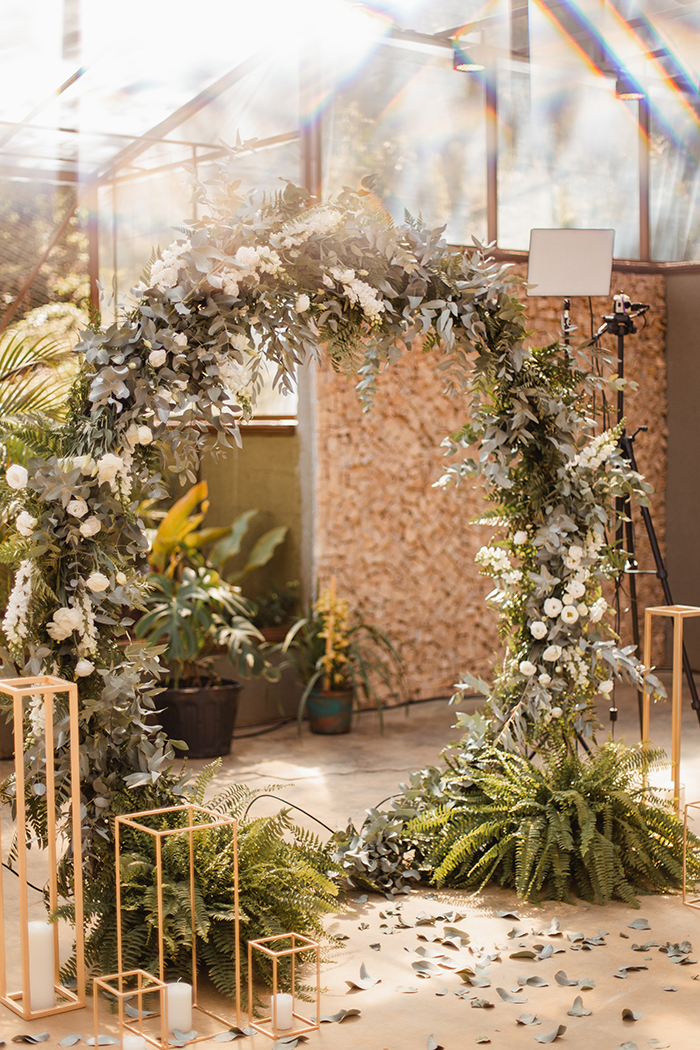 Mesmo no plano A antes da pandemia, a Rafaela já pesquisava muito algo minimalista e romântico ao mesmo tempo. Sabia que queria o altar com o arco de flores e que o verde o branco prevaleceria. Ela não queria nada muito definido, como só boho, ou só clássico, ou só rústico. Por isso conseguiram usar um pouquinho de tudo sem perder a essência de um casamento elegante. Com a chegada da pandemia os casamentos italianos do Pinterest ganharam seu coração e sua pastinha de referências e no fim, se sentiu em um!