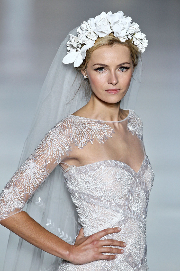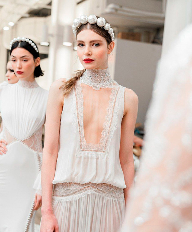Lógico que não ia demorar muito para o it-acessório das passarelas de moda chegar no universo das noivas! A tiara que veio direto dos anos 1990 – e do figurino de Blair Waldorf, de Gossip Girl – foi vista em quase todos os penteados dos desfiles de vestido de noiva pelo mundo.
