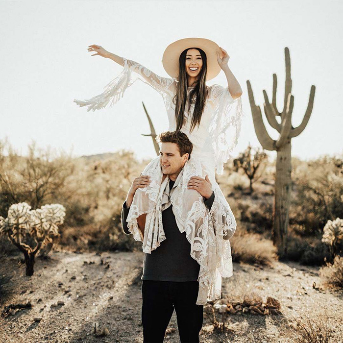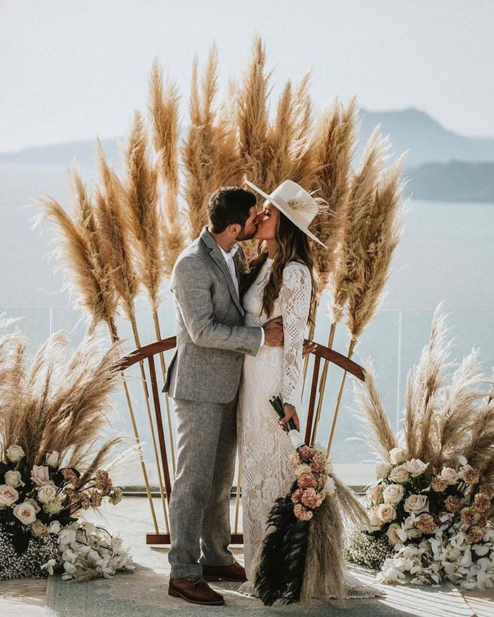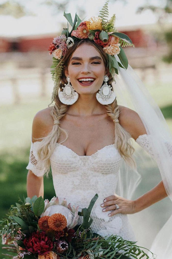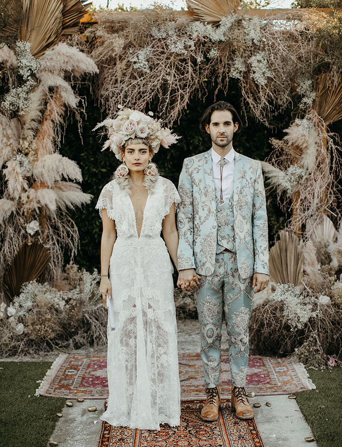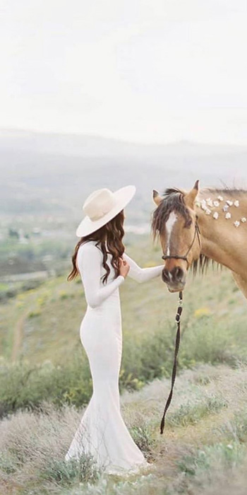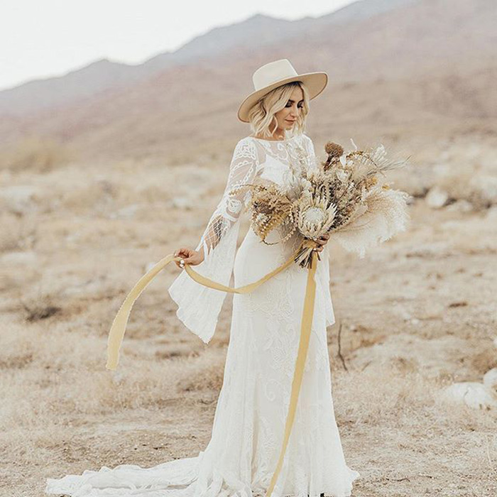 Tiramos o chapéu para esta tendência! Embora possa parecer um acessório de cabelo inesperado para um casamento, já notamos que eles são as novas biker jackets nos casamentos boho e folk. Opte por chapéus de palha de abas largas inspirados no interior da França e Espanha ou os chapéus de cowboy para um visual indie/boho/folk/rock star.