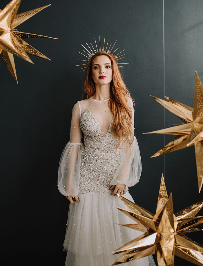 Um subconjunto das coroas, os halos estão cada vez mais populares. Ele dá uma aparência mais ousada nas coroas deixando o look da noiva mais descontraído. Eles funcionam muito bem até em penteados de noiva com cabelo curto!
