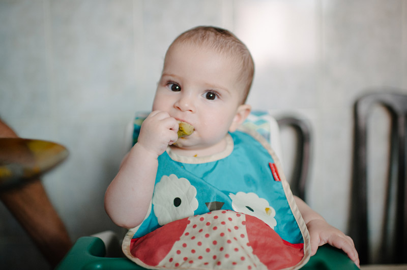 uma coisa boa: nem precisei me preocupar com a comidinha da Bela. A titia Queila fez os legumes e estavam deliciosos! A Bisa só não entende essa coisa de comer com as próprias mãos! rs