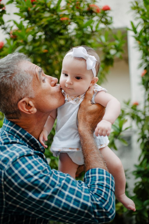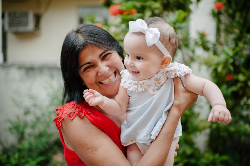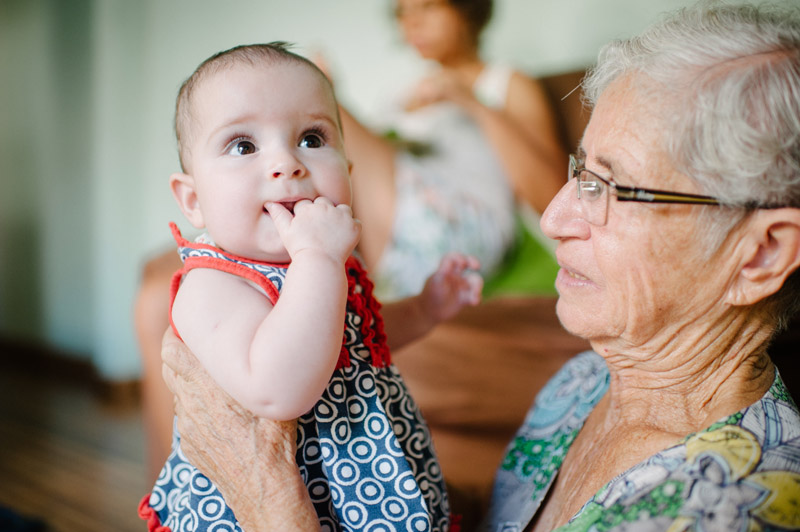 Sempre que voltávamos do colégio, almoçávamos na casa da vovó junto com as primas, as vezes assistíamos televisão ou brincávamos no quintal. O quintal era enorme, mas bastaram alguns anos para ele parecer ter encolhido! Hoje uma nova geração acha o quintal enorme, ama brincar ali: os bisnetos. E só posso dizer que foi emocionante poder levar a Bela para brincar e comemorar os 7 meses no lugar onde passei a minha infância. A saudade da vovó Nilza, que já foi, é muito grande, mas fico feliz de pelo menos poder apresentar o vovô João e a vovó Sara para a minha pequena! A Bela tem biso e bisa que a amam muito!