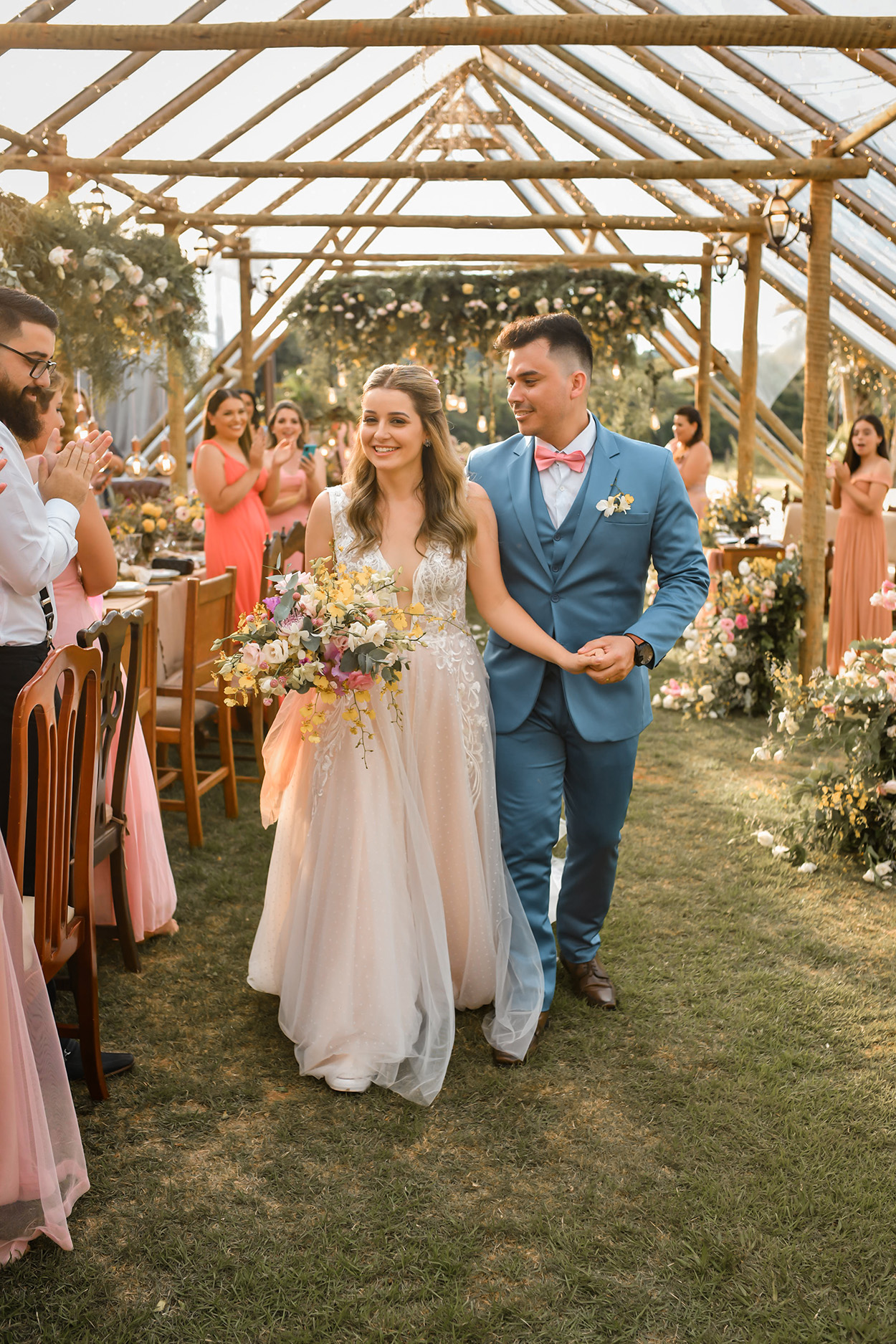 A Bruna começou a pesquisar os fornecedores e realizar as visitas mas, infelizmente, o sogro faleceu. Então, os planos foram adiados por algum tempo. Após um ano, eles decidiram começar rever os planos do casamento de novo.