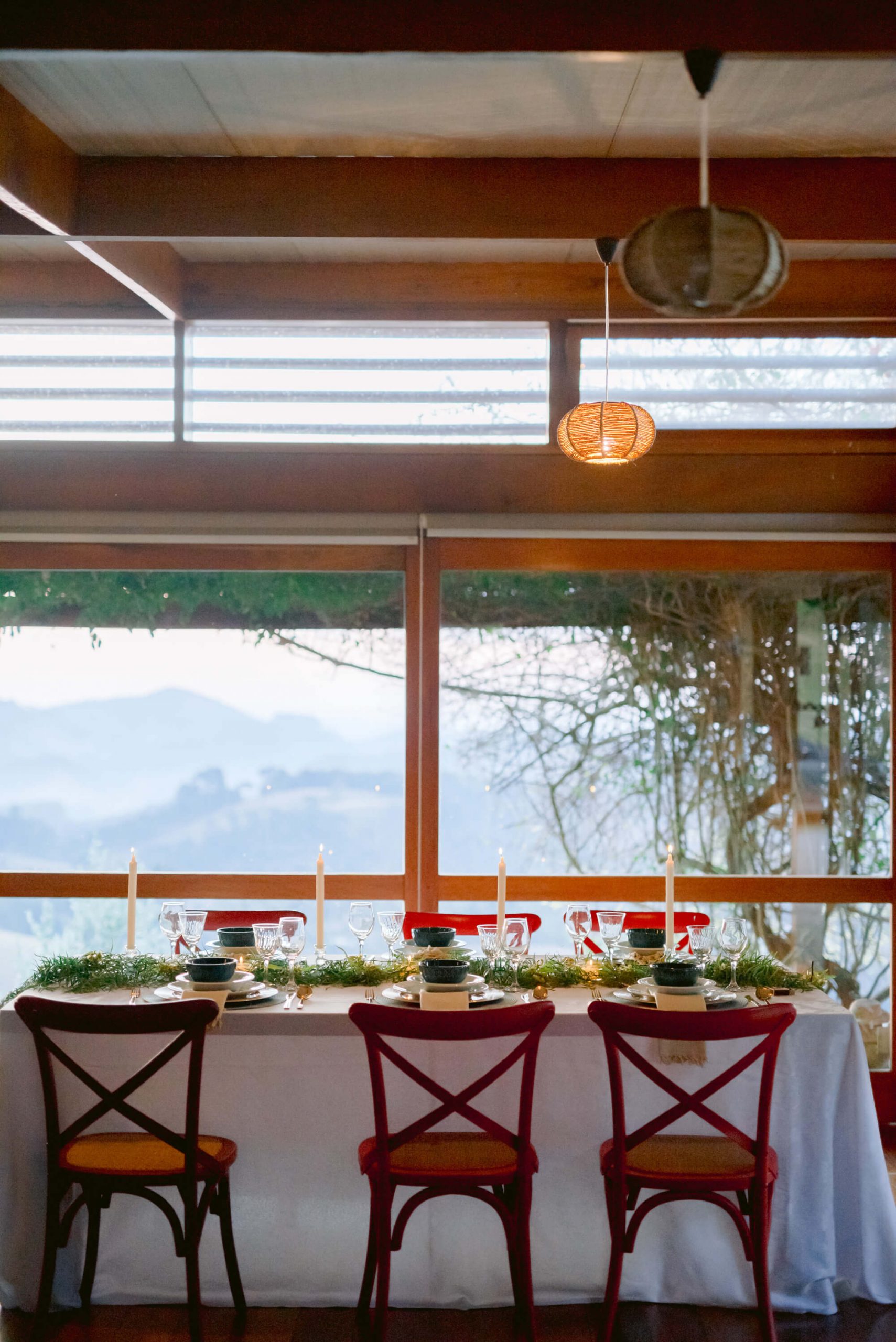 Além disso, a escolha do lugar também foi muito importante, pois eles queriam uma casa no campo, num lugar alto com uma vista das montanhas, que passasse um sentimento de tranquilidade, calma, e ao mesmo tempo grandeza, um horizonte infinito fazendo um paralelo ao que representa o casamento. “E a casa em Gonçalves foi perfeita, um bom jantar também tem o seu valor e deixa a noite mais deliciosa”.