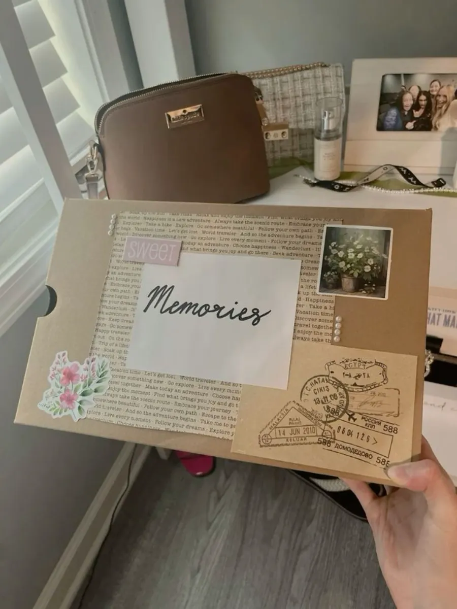 Monte uma caixa com fotos, ingressos de shows, bilhetes, cartas e objetos simbólicos que contem a trajetória de vocês.