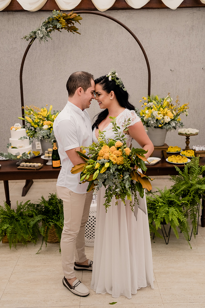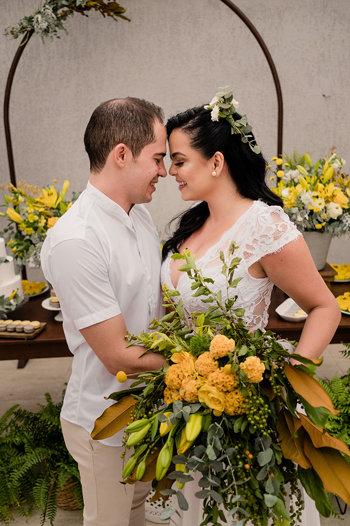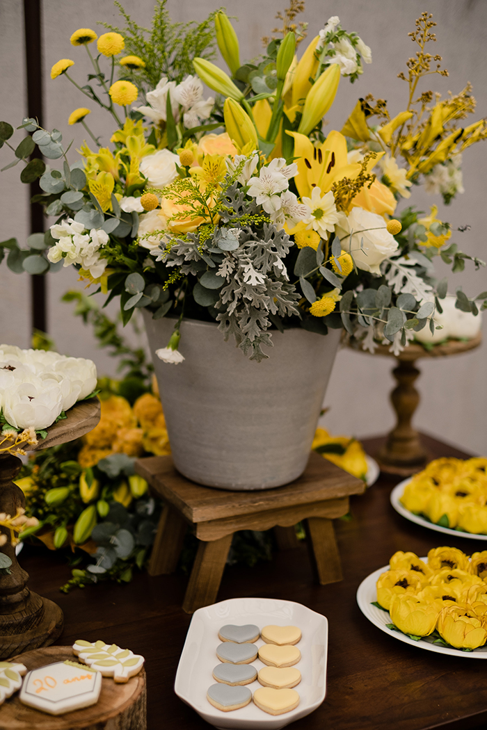 A casa do casal ficou ainda mais charmosa com decoração seguindo as cores Pantone 2021, cinza e amarelo, com uma vibe no estilo mais rústica porém delicada.