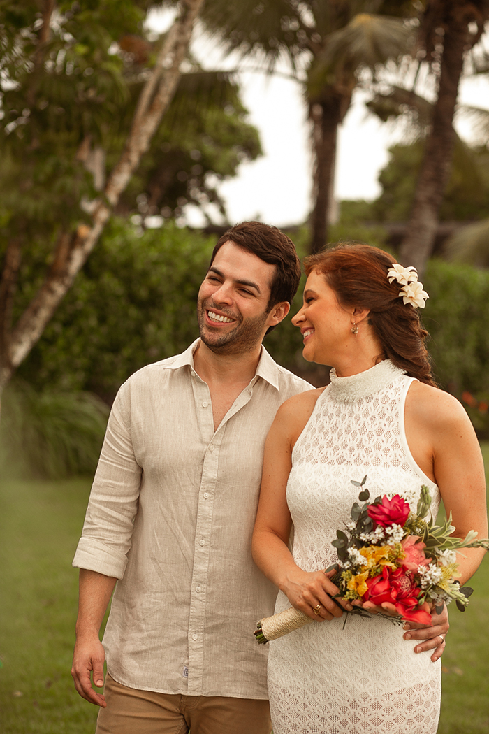Os dois puderam desfrutar de um dia maravilhoso com tudo que mais desejavam: “Ser na praia, super pequeno e intimista, e eu ter feito o meu próprio bolo, desta vez!”. A decoração seguiu uma paleta de cores das flores da região: viva e colorida com detalhes encantadores.