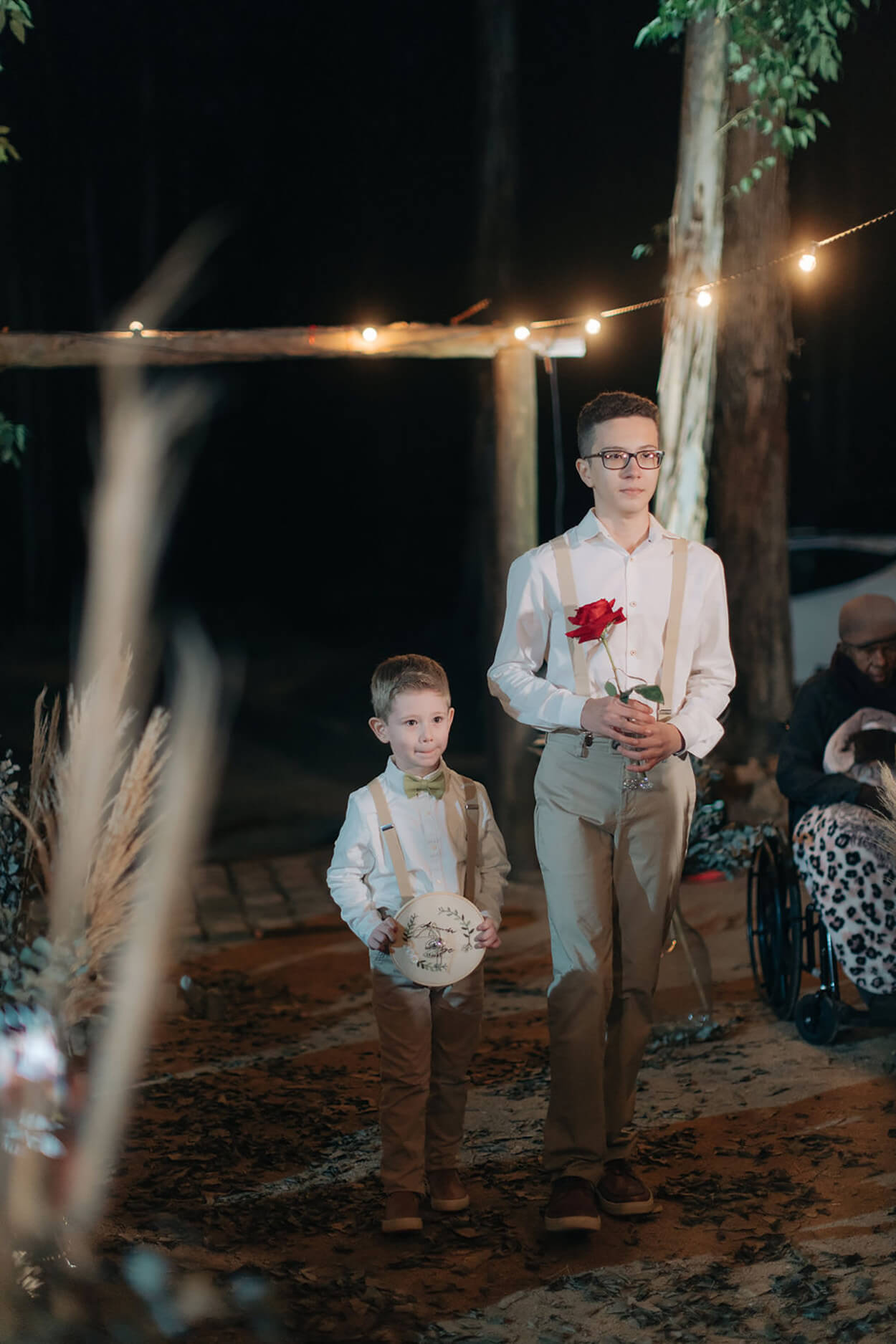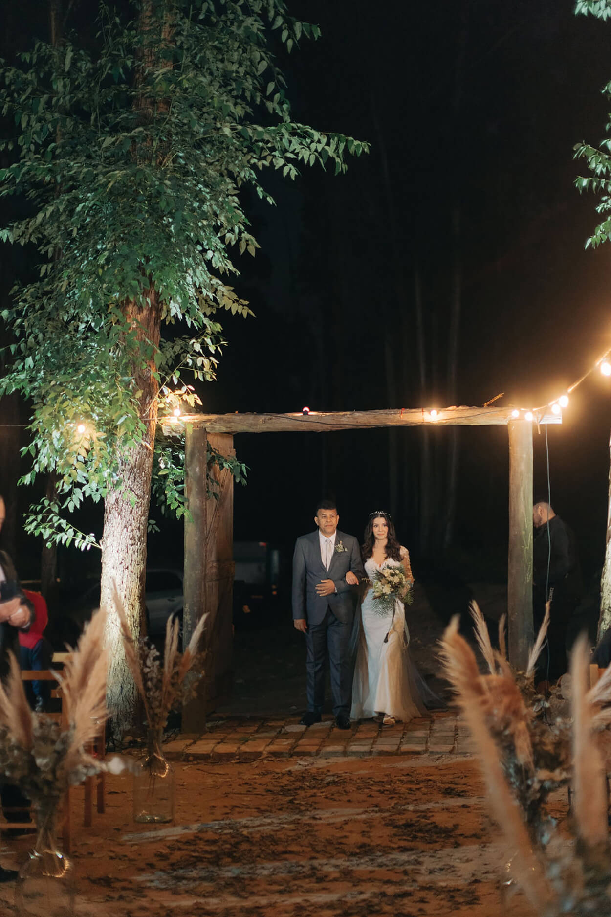 “Nossa cerimônia intimista, com 60 convidados, aconteceu em meio aos eucaliptos, com celebração bilíngue graças ao Celebrante Marcos Curiati e transmissão ao vivo. O mais difícil mesmo foi segurar o choro quando o noivo lia os votos em português.