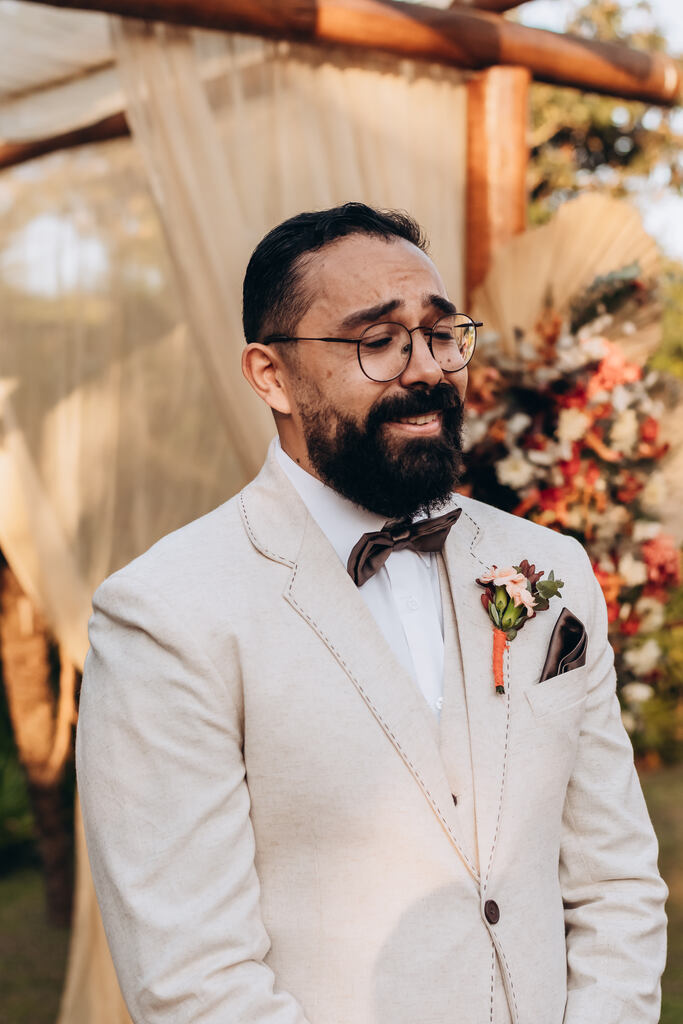 Embora o noivo tenha optado por um sapato social, os padrinhos ficaram à vontade para trazer um lado mais casual com seus tênis esportivos.