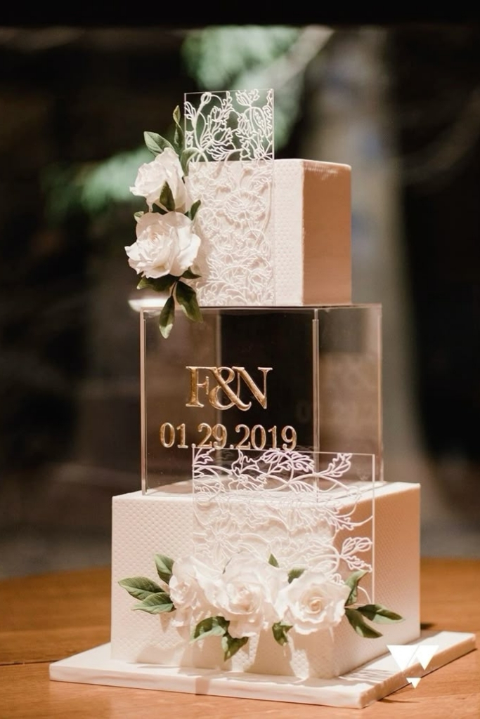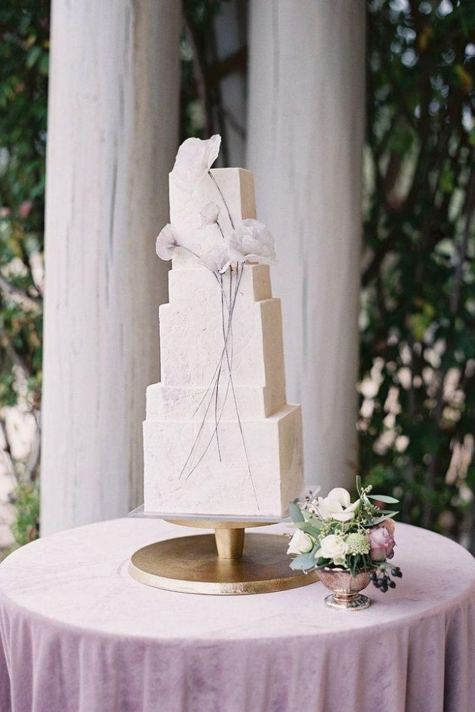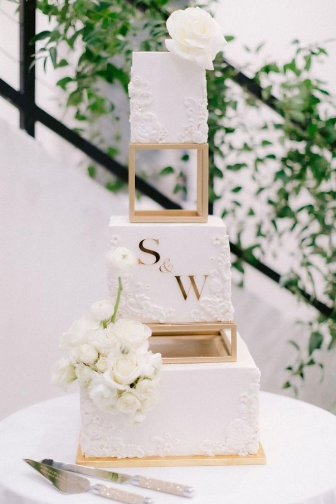 O bolo de casamento quadrado é considerado moderno e é a cara de uma festa na cidade, bem descolada.