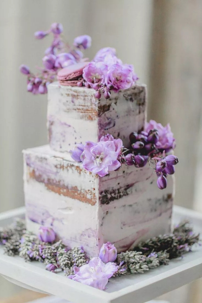 Assim como o naked cake e o espatulado, esse bolo também combina com casamento rústico.