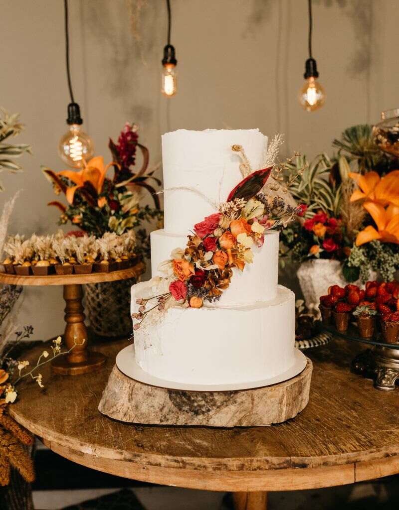 Apenas solte a criatividade para que o bolo de casamento se destaque na mesa de doces, sem perder a essência que você e seu amor querem transmitir!