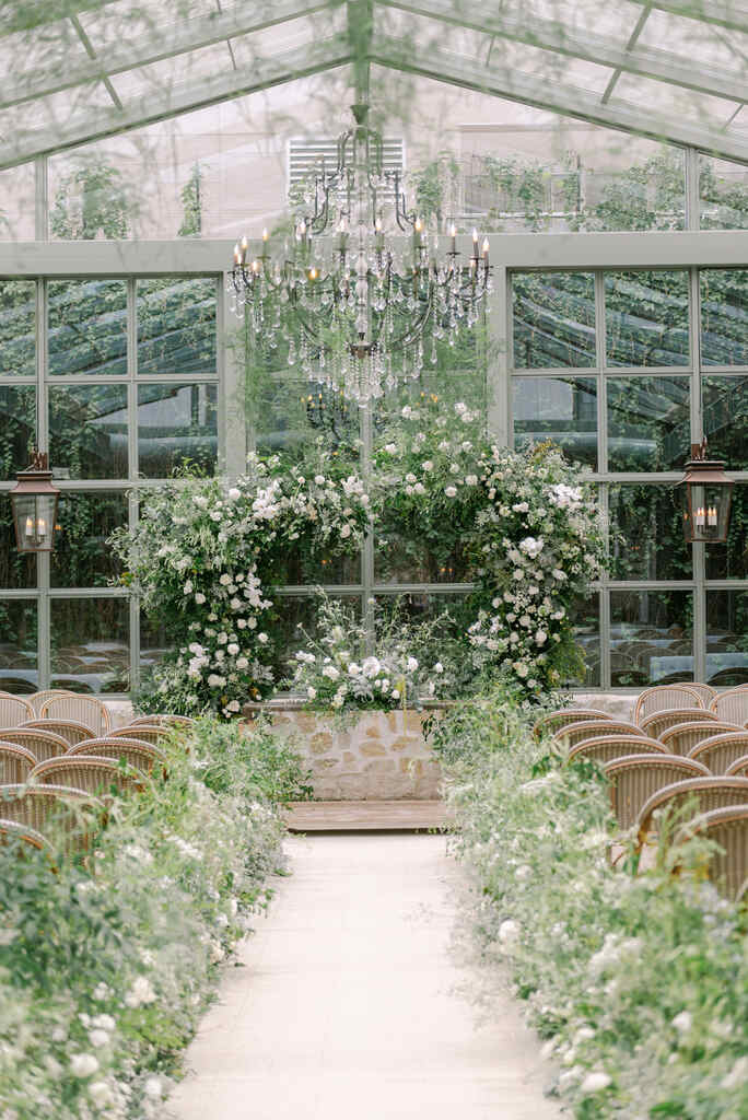 Uma deslumbrante estrutura com teto de vidro retrátil (que proporciona conforto inclusive no plano B), pedras naturais nas paredes, lustres e luminárias de ferro e cristais, além de outros itens que arrancam suspiros dos noivos e convidados quando entram na casa pela primeira vez.