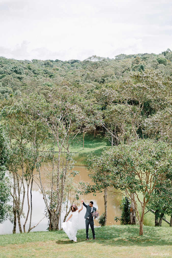 Para a Renata e o Wagner era super importante um local com natureza por todo lado; um fotógrafo mara; um vestido com preço justo; família e amigos.