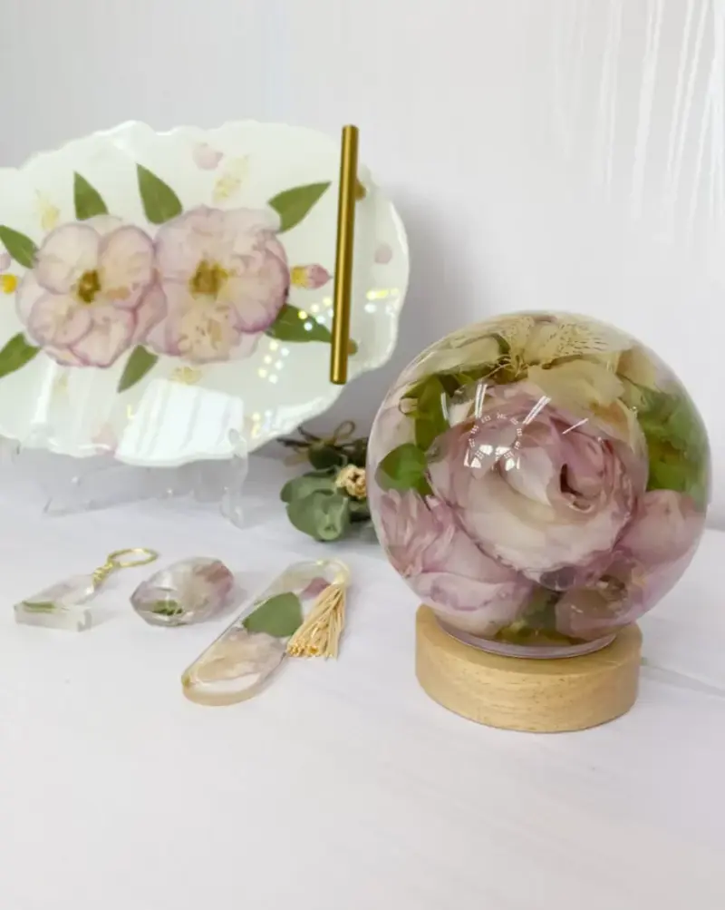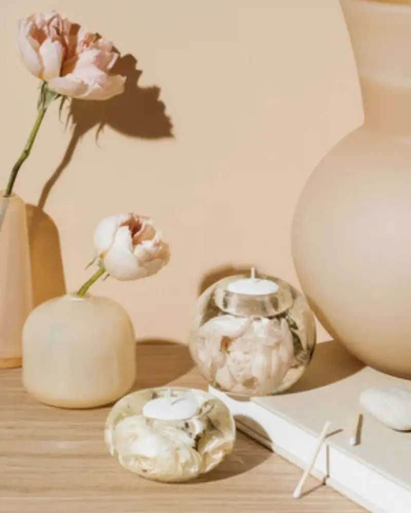 Cercada pela beleza e delicadeza das flores ao longo de sua vida, Valéria as via como fontes de inspiração e conexão com a natureza. Foi então que, com coragem e amor, deu um passo importante e mergulhou no universo da resina.