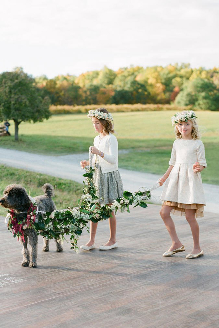 O cachorro no casamento pode entrar sozinho levando as alianças ou acompanhado da daminha de honra ou pajem, ou até mesmo acompanhando os dois.