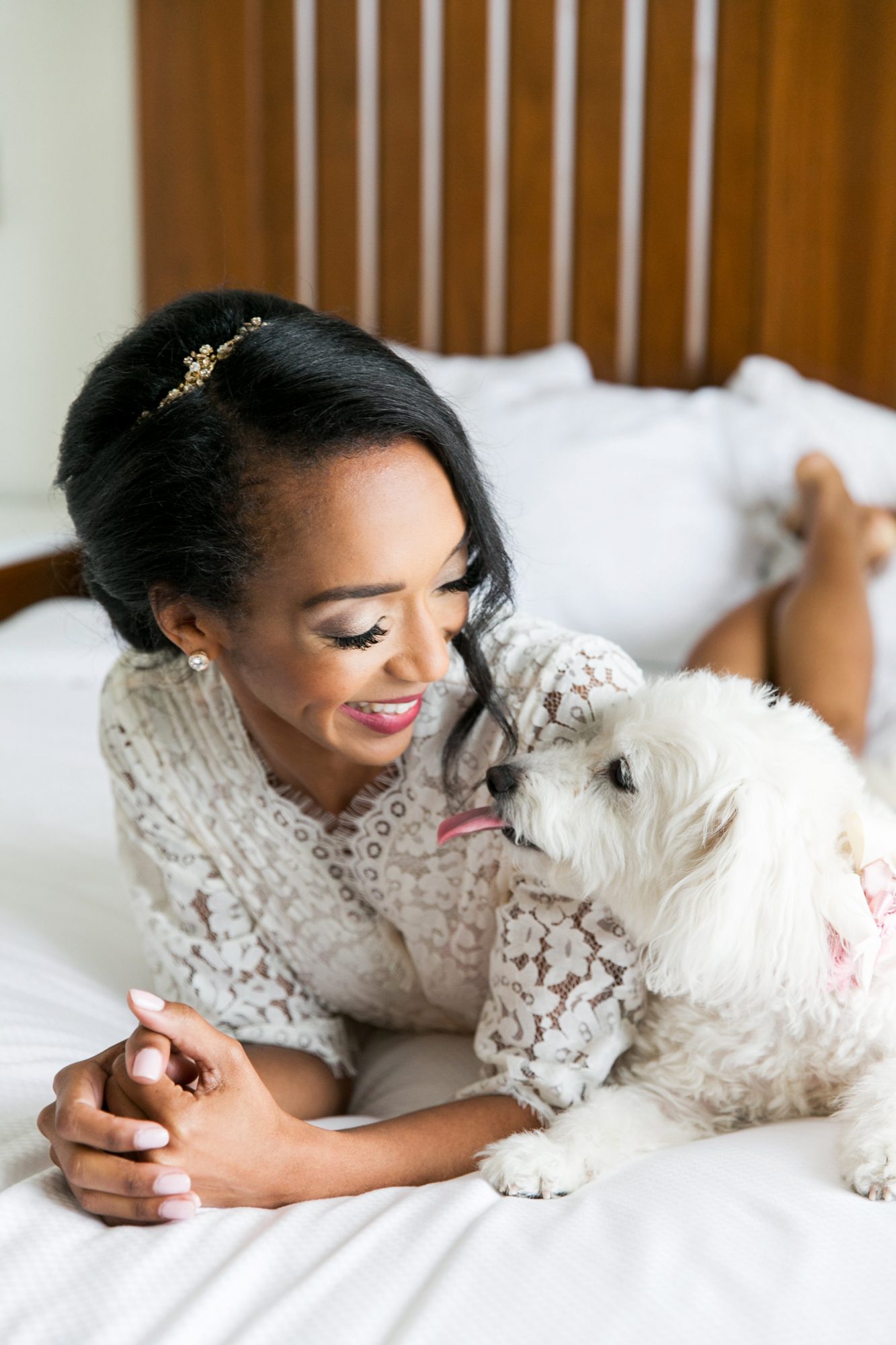 O seu amigo de quatro patas pode participar das fotos durante o making of da noiva e as madrinhas, com os padrinhos e também no ensaio dos noivos após a cerimônia.