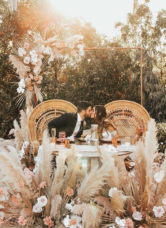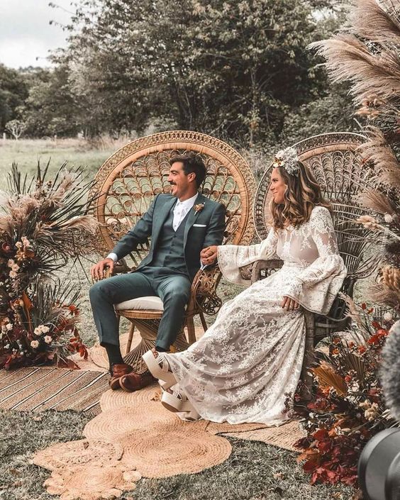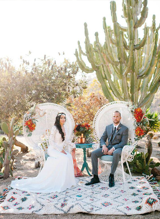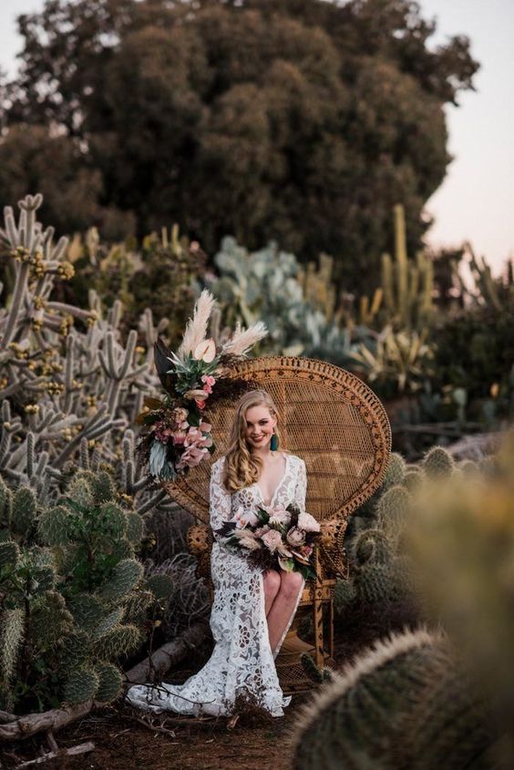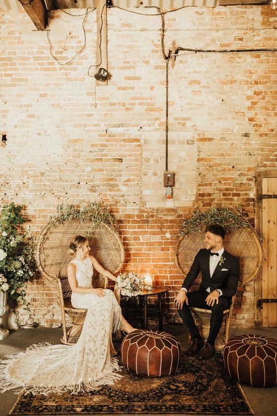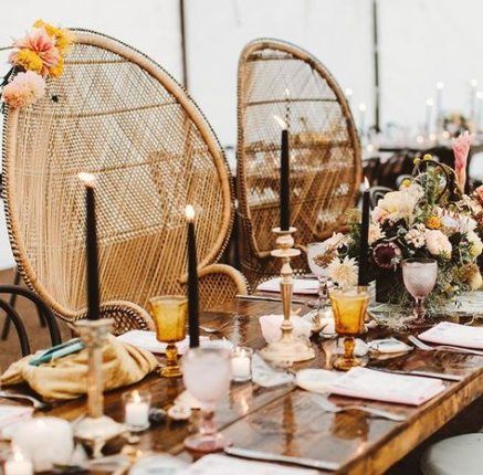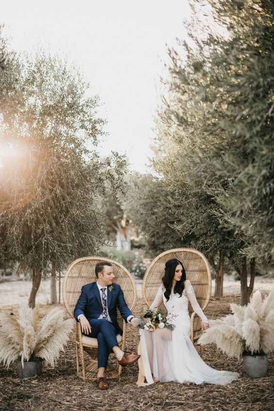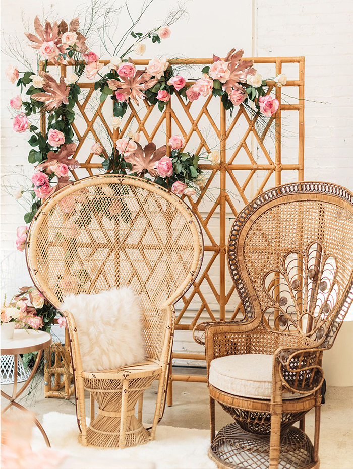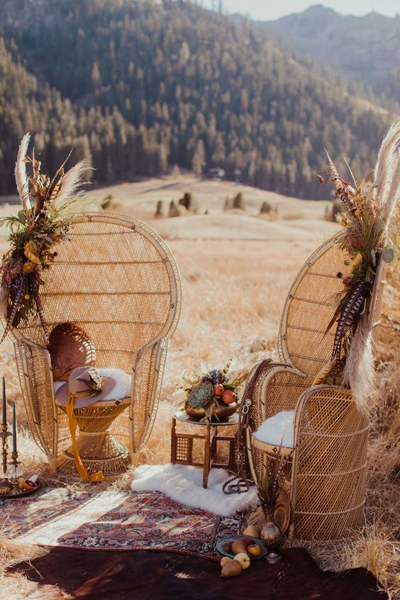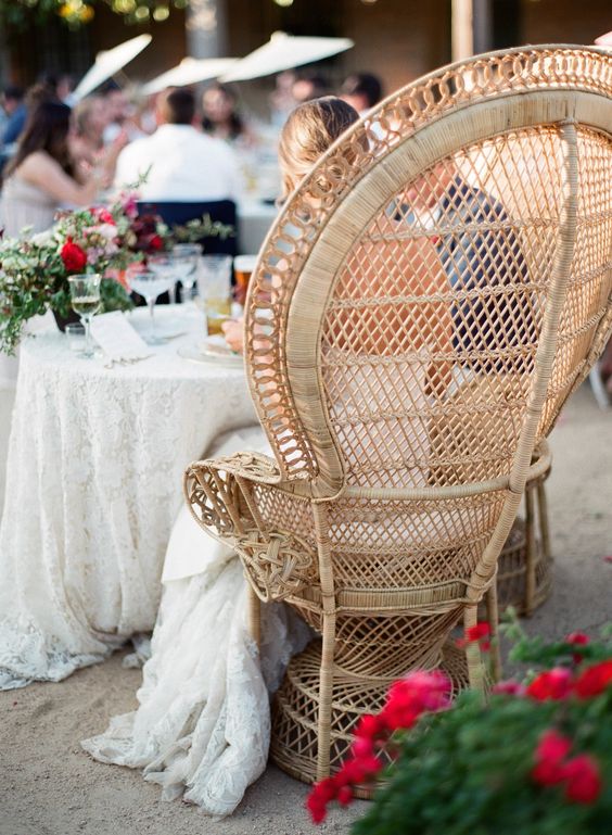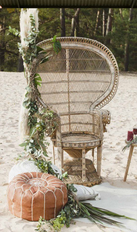 A cadeira pavão ou Emanuelle é sinônimo de estilo e muito comum em casamentos boho.