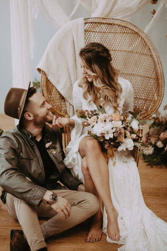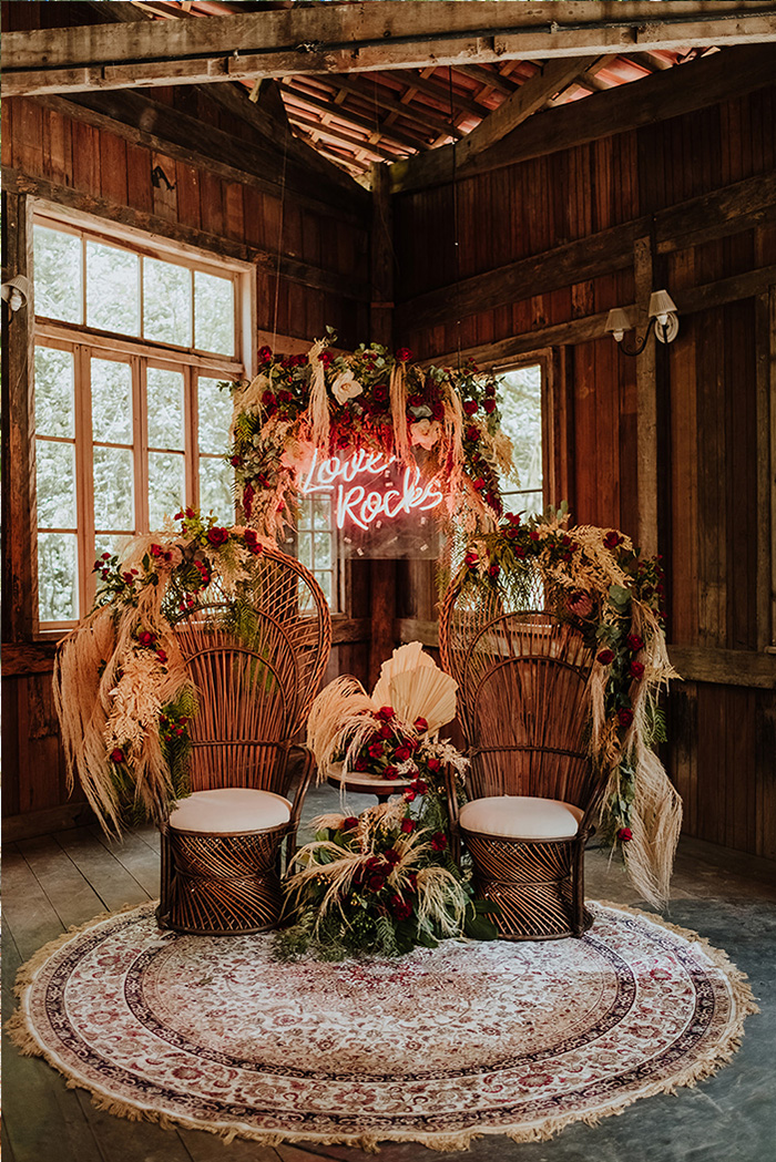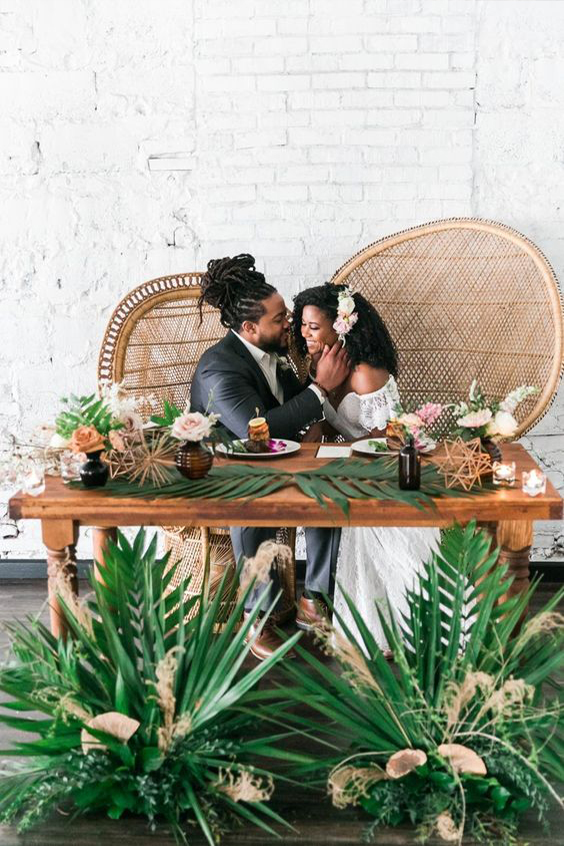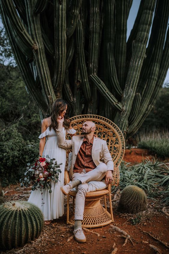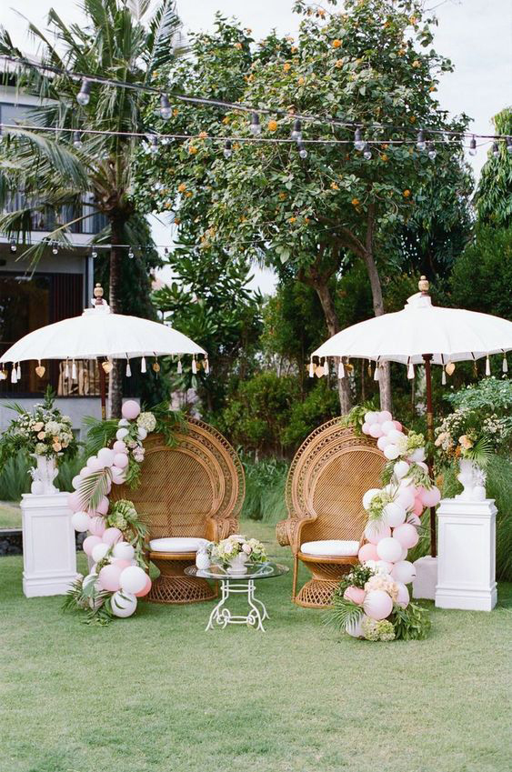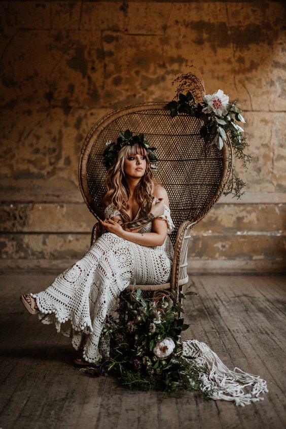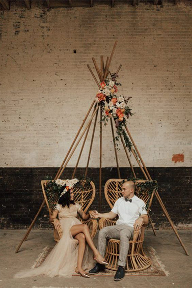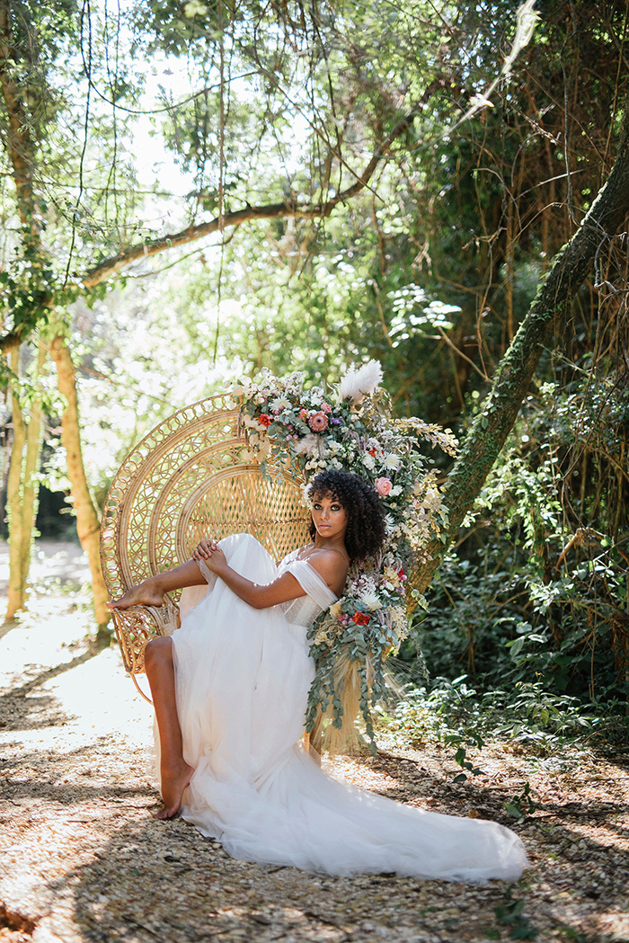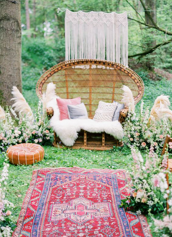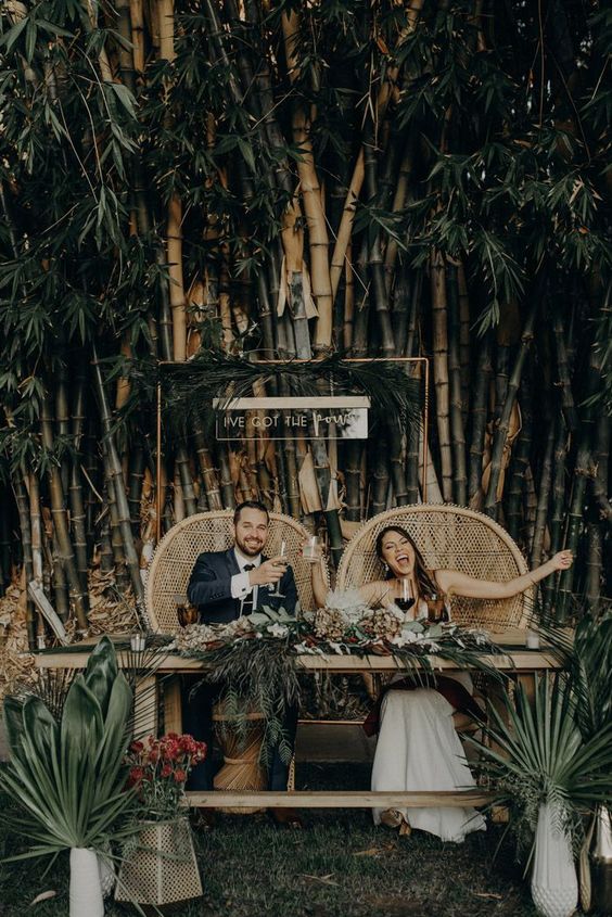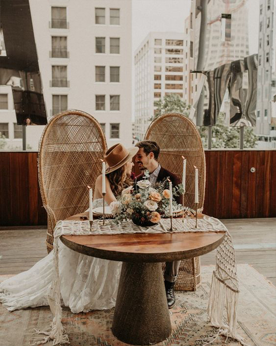 A cadeira pavão ou Emanuelle é sinônimo de estilo e muito comum em casamentos boho.