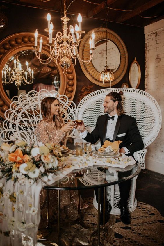 A cadeira pavão ou Emanuelle pode ser usada de várias formas na decoração de casamento: na mesa da família, como cadeiras dos noivos ou em uma mesa exclusiva dos noivos.