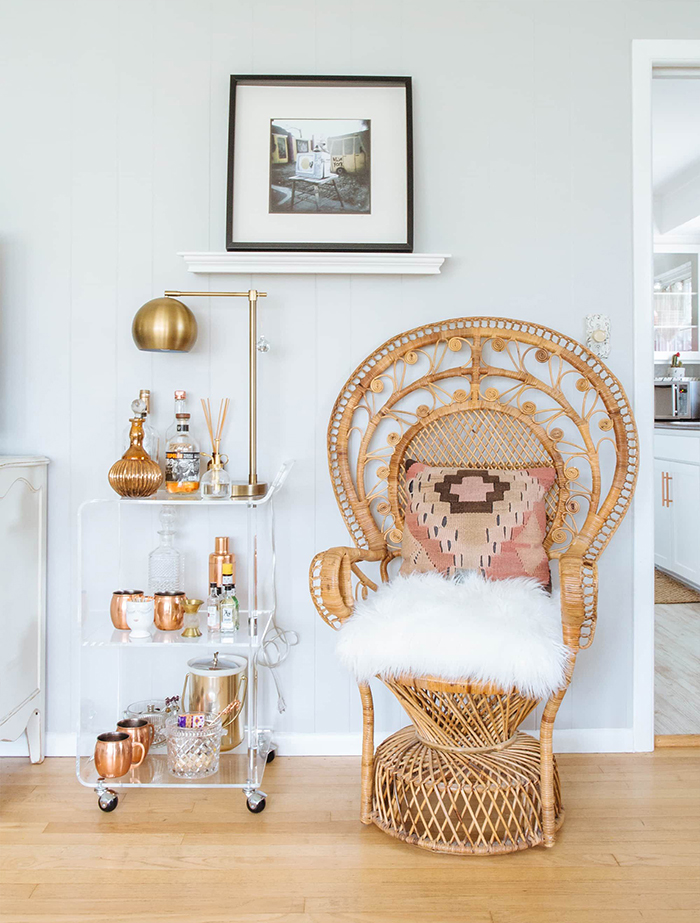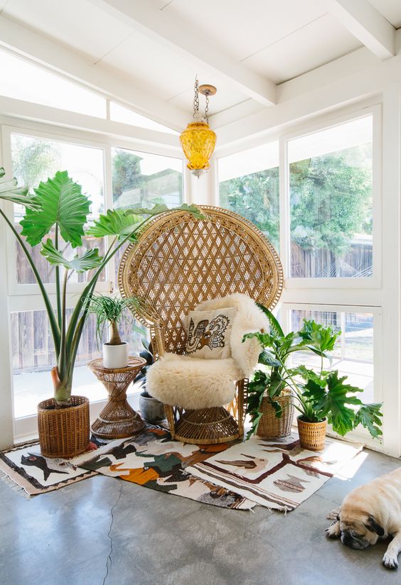 Por causa da sua natureza, optar por uma cadeira pavão ou Emanuelle na decoração da casa nova é dar mais personalidade ao ambiente. Sozinha ou com alguns adornos a cadeira se torna o ponto focal do espaço. A decoração fica única, cheia de glamour e com um toque boho chic.