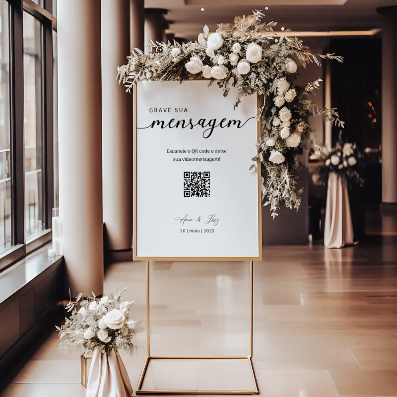 Muito além de fotos tradicionais, ela permite que os convidados enviem vídeos, recados e registros espontâneos que se tornam lembranças valiosas com o passar dos anos.