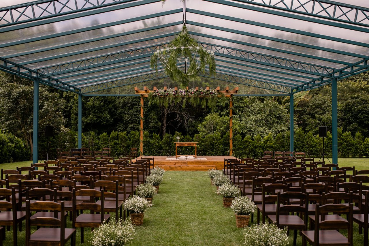 Para lugares remotos ou espaços que não tenham disponibilidade coberta para acionar o plano B se for preciso, vai ser necessário contratar serviços de locação de tendas e planejar outras alternativas capazes de adaptar o local durante a cerimônia.