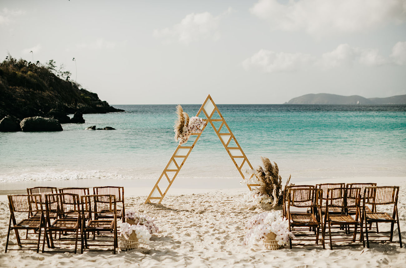 3) Os bancos de madeira podem ser usados em um casamento na praia