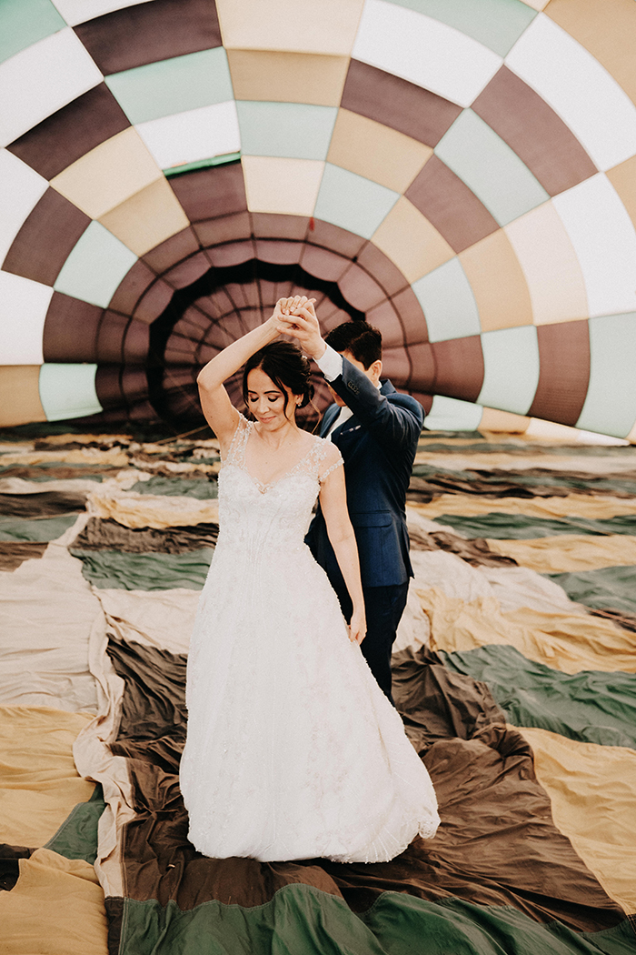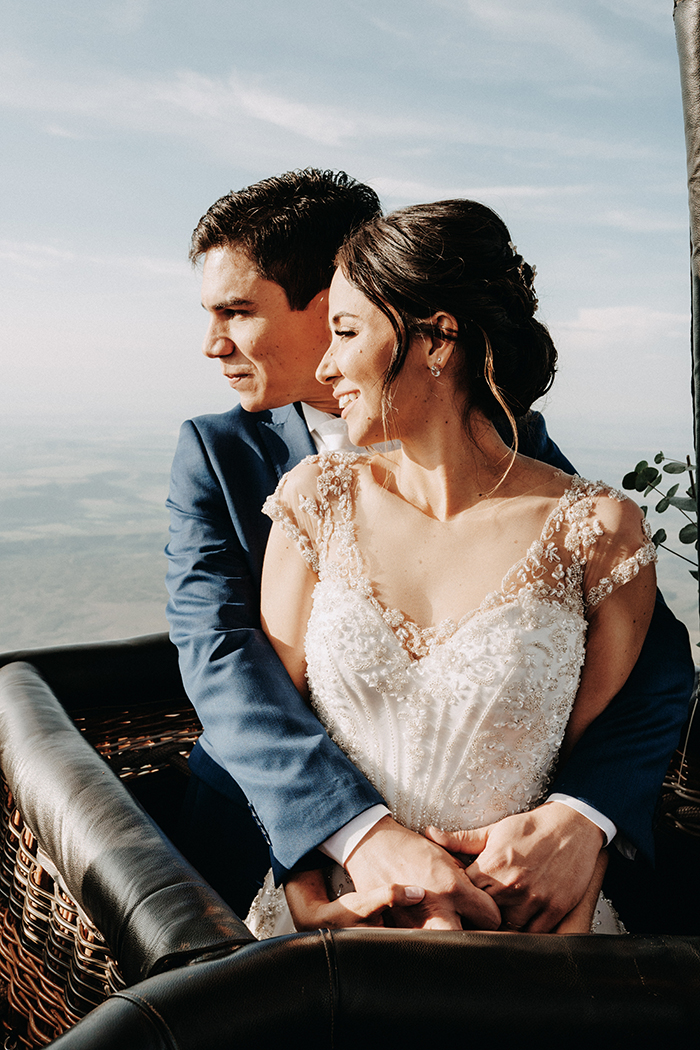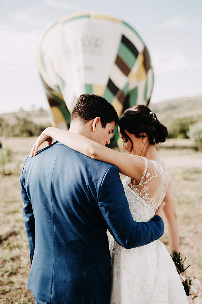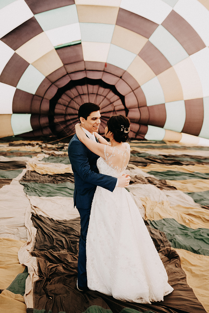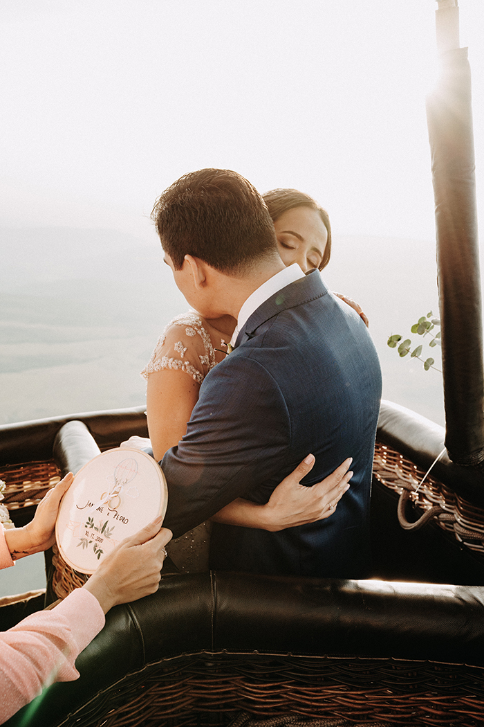 Numa conversa com o Pedro, a Janinne perguntou se ele topava fazer o elopement num vôo de balão. “Sempre quis andar de balão!” Ela conseguiu convencê-lo dizendo assim: “Imagina nossos filhos saberem que os pais casaram em um balão?”