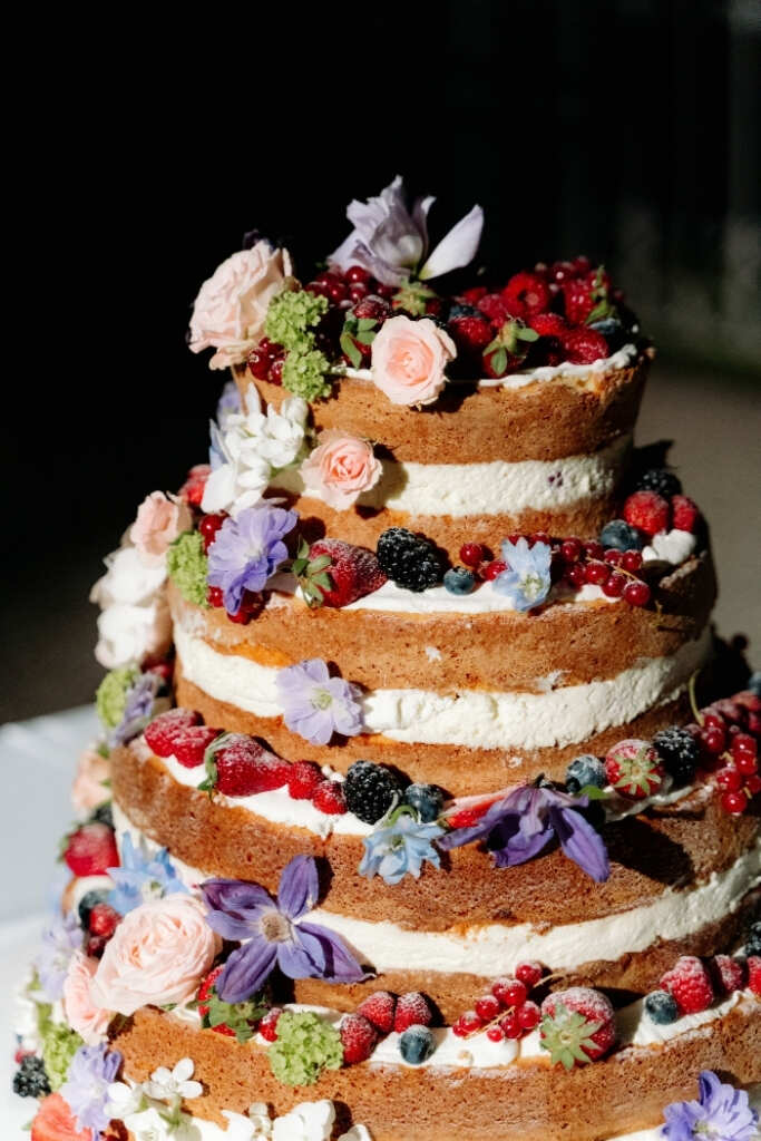 Esqueça os bolos grandiosos e com muitos andares. Prefira os mais simples, delicados e com frutas e flores para decoração.