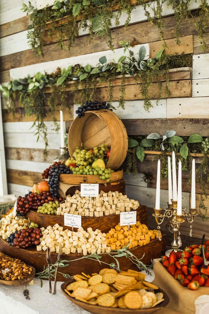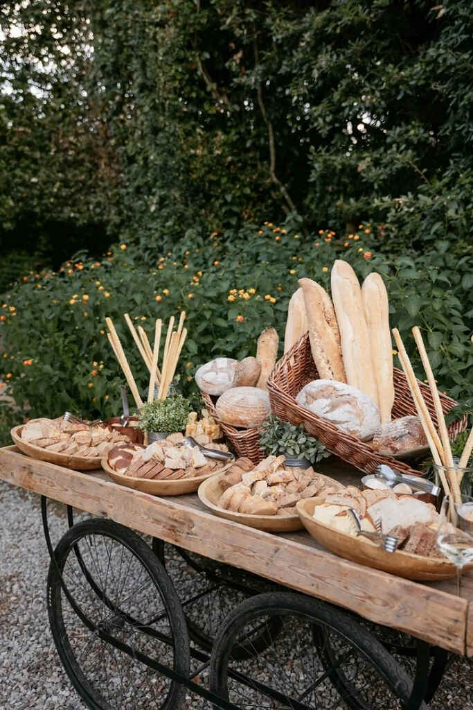 O que é servido em um buffet de casamento boho chic?