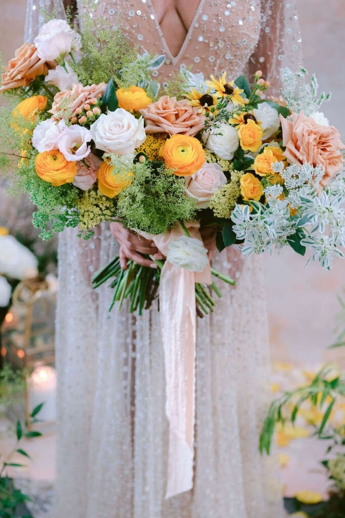 Você pode escolher qualquer buquê desde que não seja o redondo tradicional.