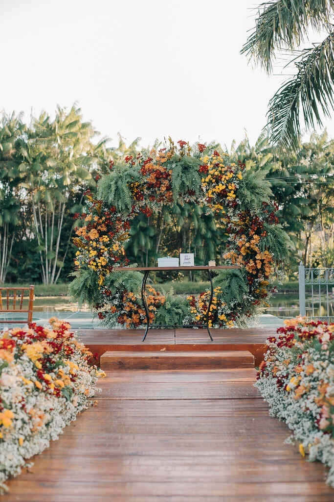 O altar precisa ser integrado com a natureza, seja com flores ou folhagens.