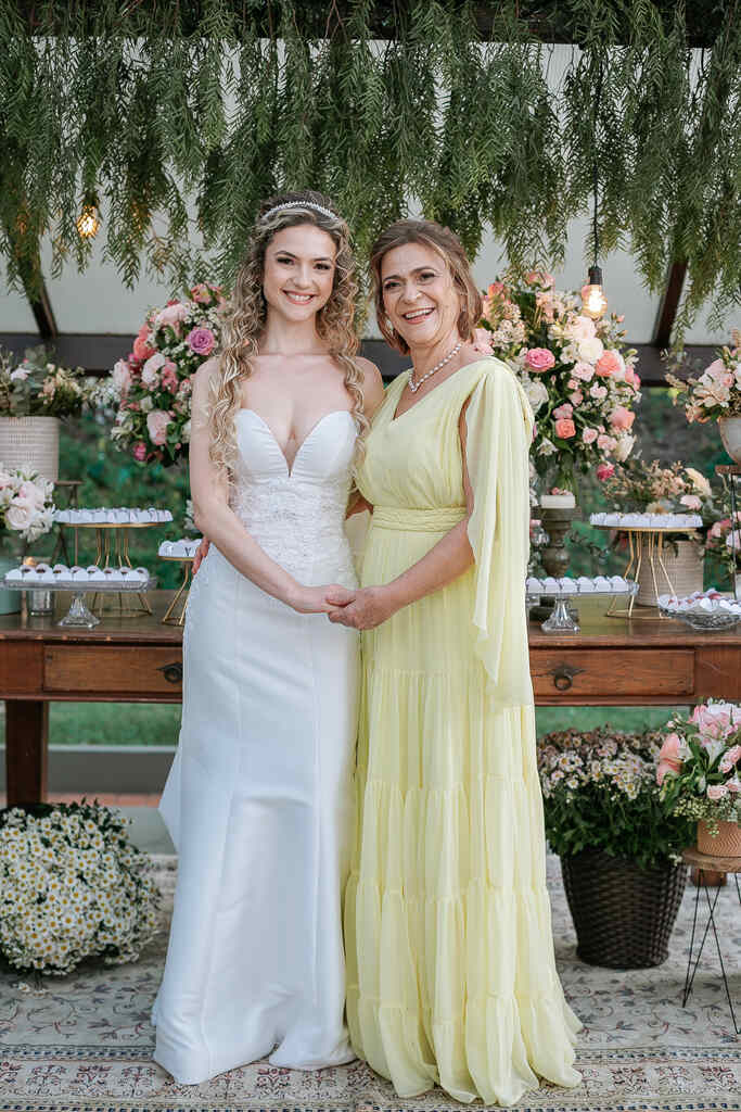 Já as mães dos noivos podem até escolher um vestido com pedrarias, porém com pouco brilho.