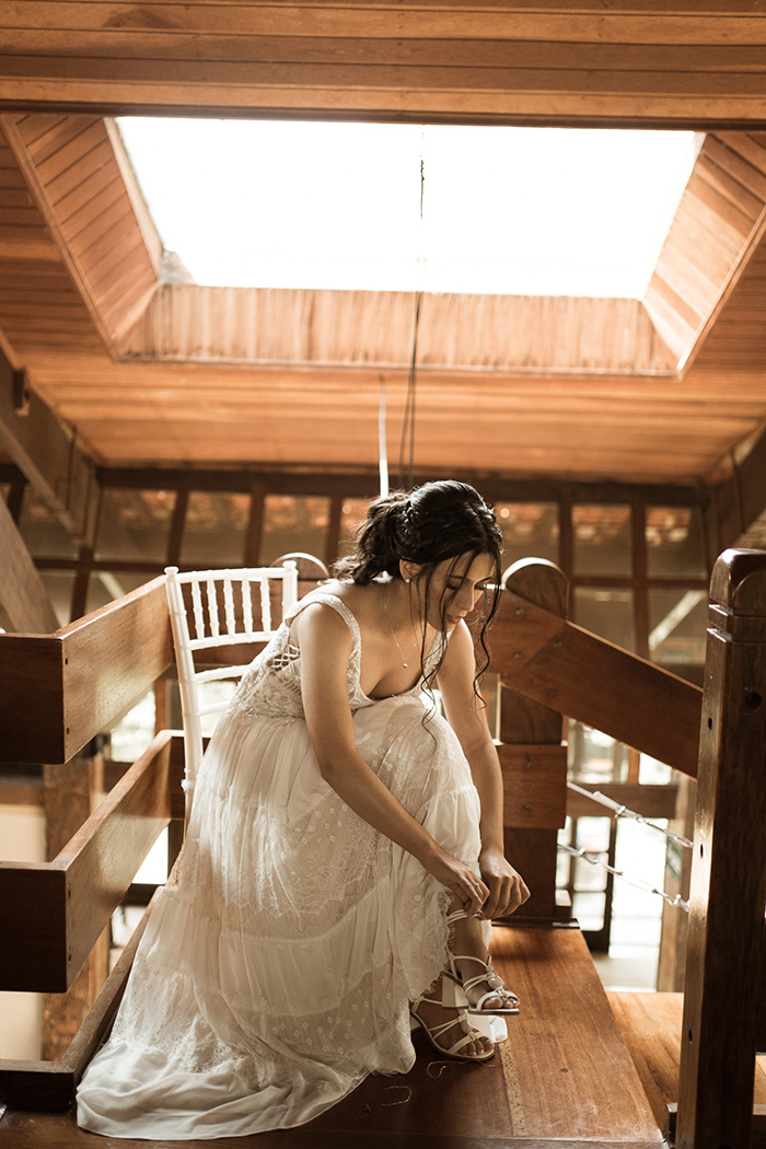 A Thayse e o Samuel envolveram todo mundo para que o casamento tivesse a personalidade deles em cada detalhe. Tanto que a própria noiva desenhou o seu vestido de noiva. UAU!