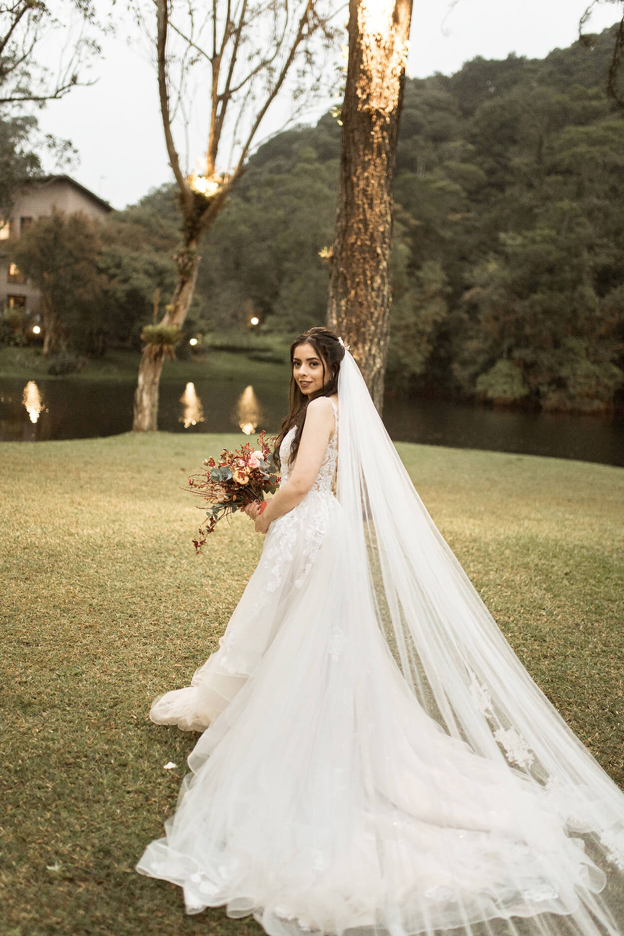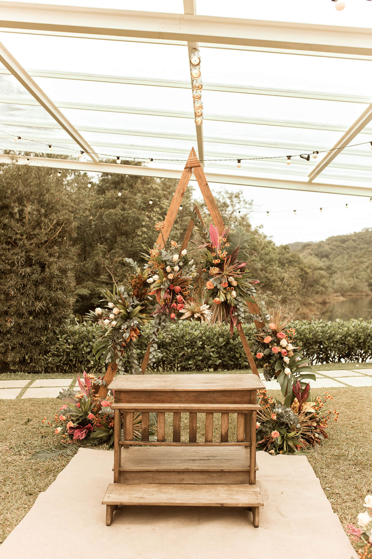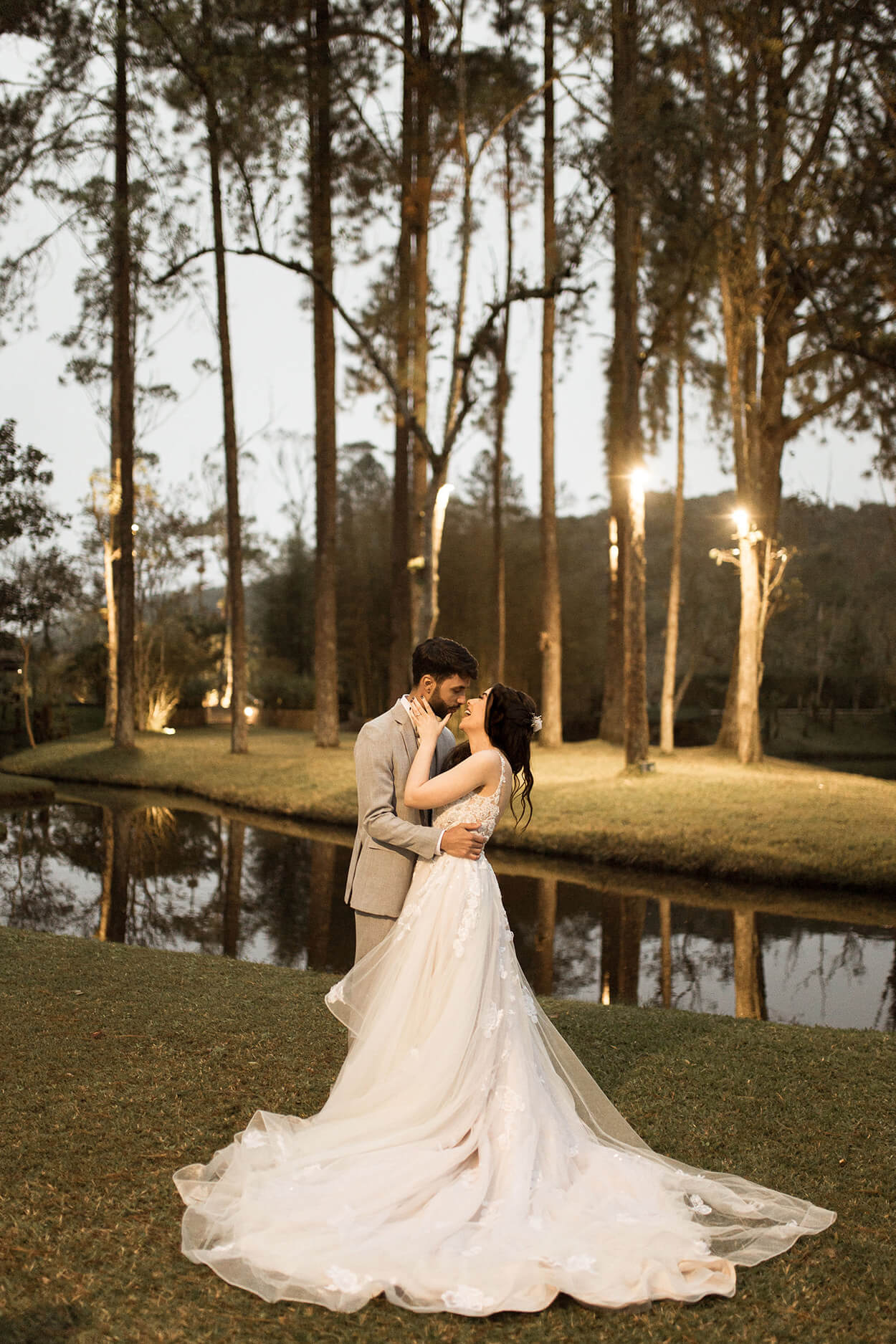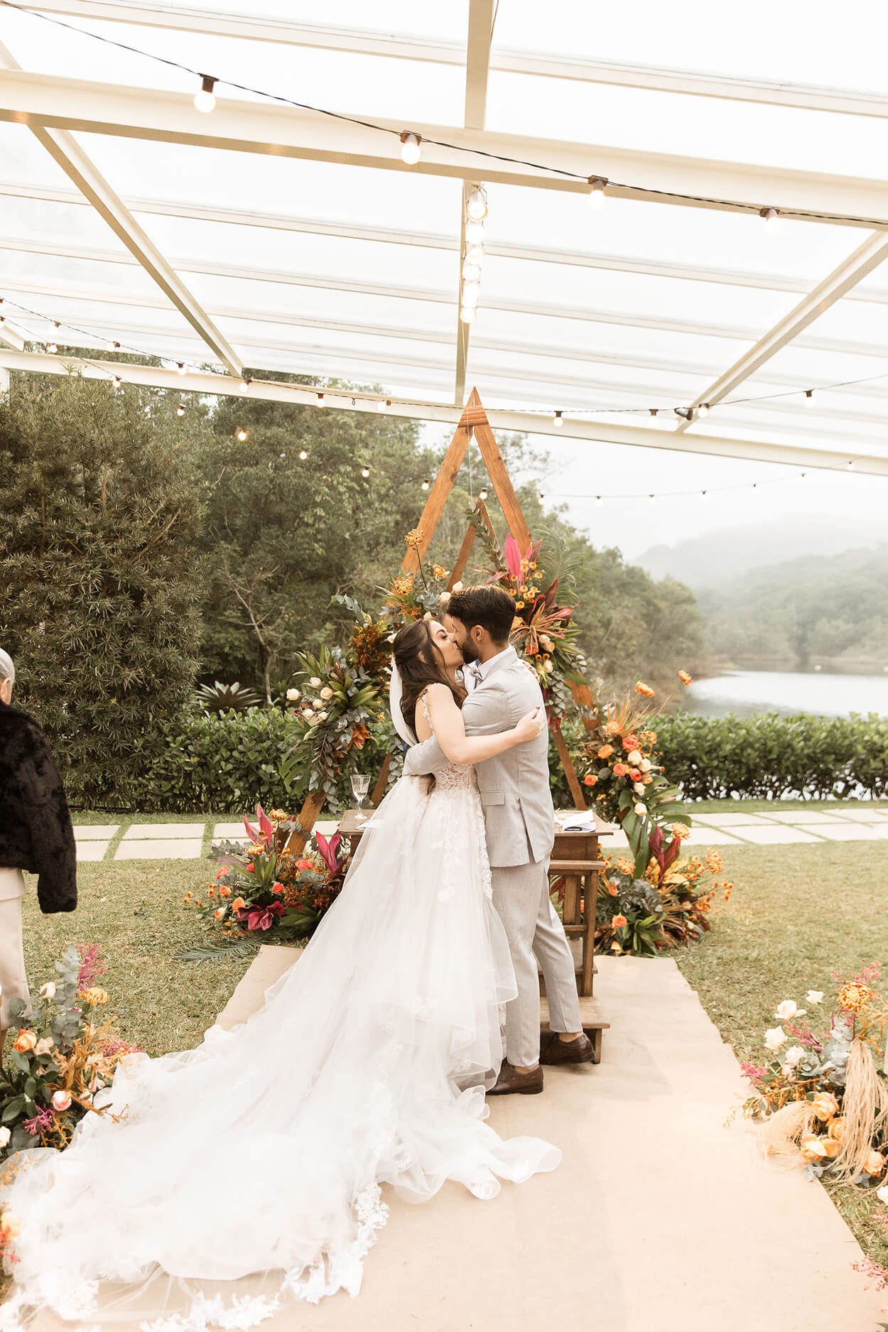 Na verdade, foi por isso que escolhemos o lugar, por conta do meu sonho de casar ao ar livre. Porém, no dia anterior ao meu casamento choveu, deixando o plano A inviável devido ao barro.”