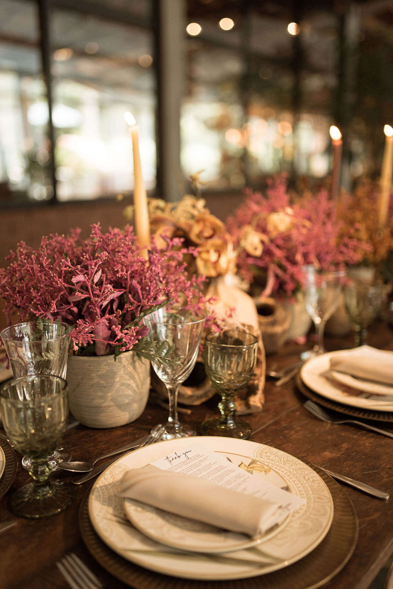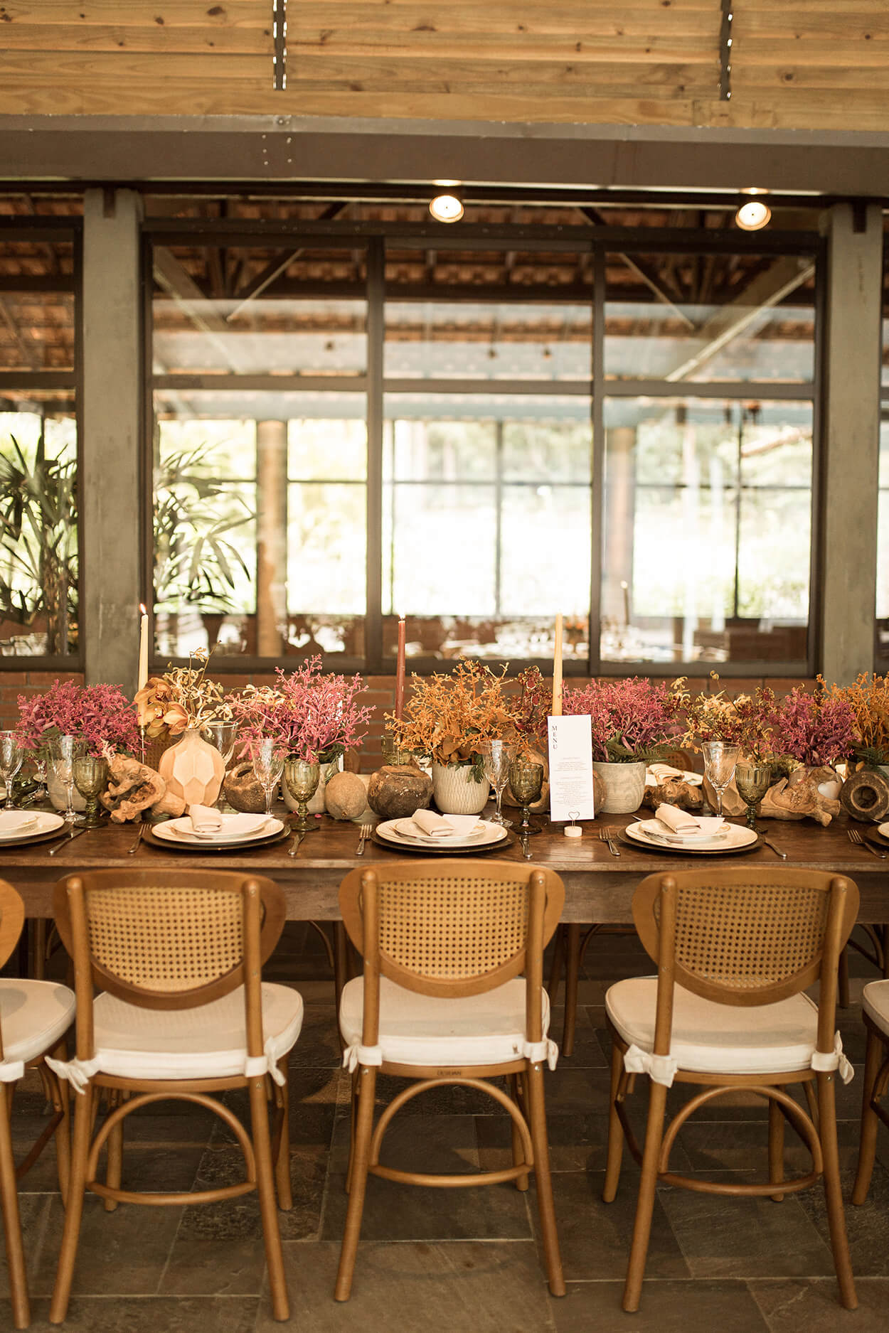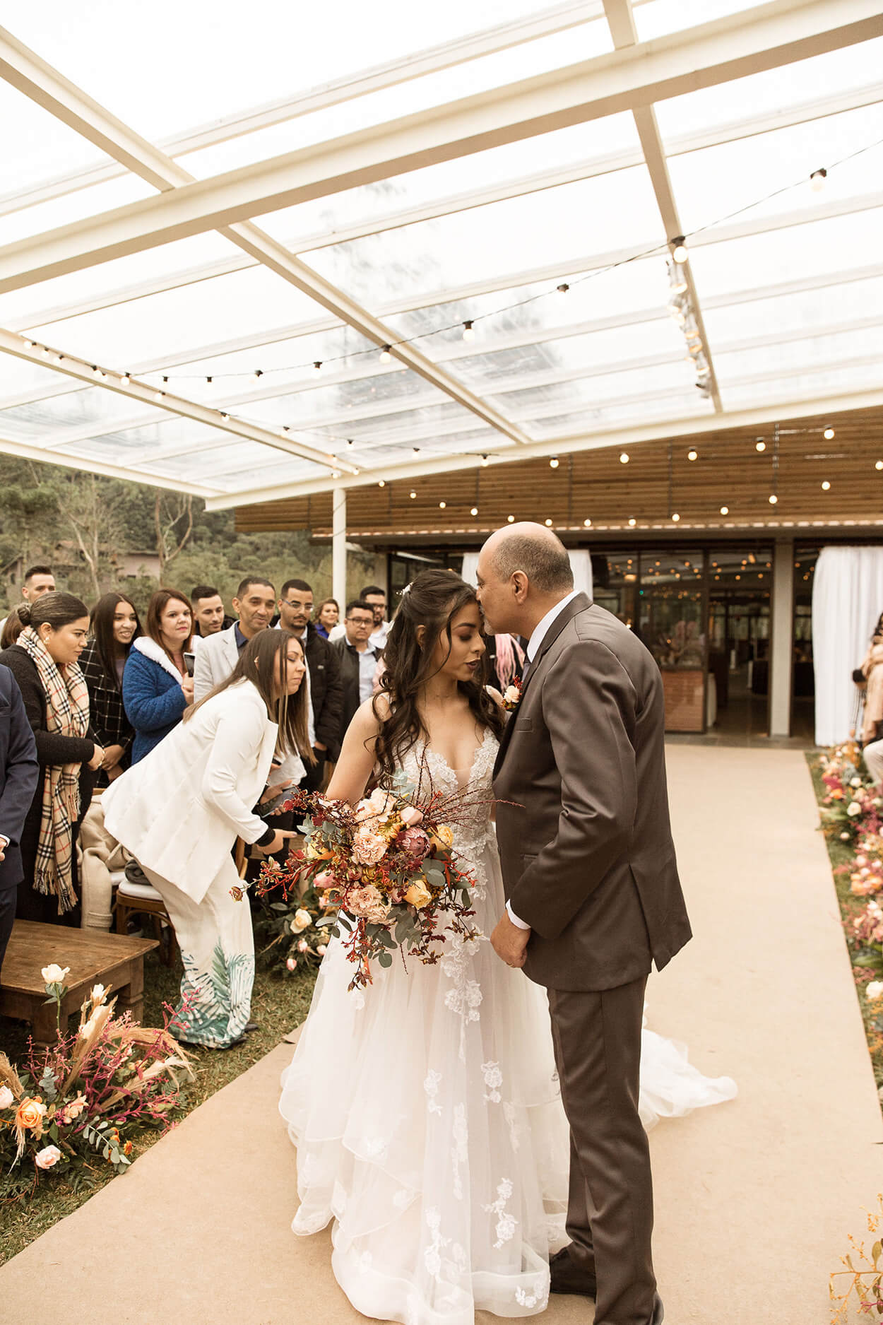 A celebração aconteceu bem no friozinho de junho, combinando uma paleta voltada para o inverno, cheia de tons terrosos.