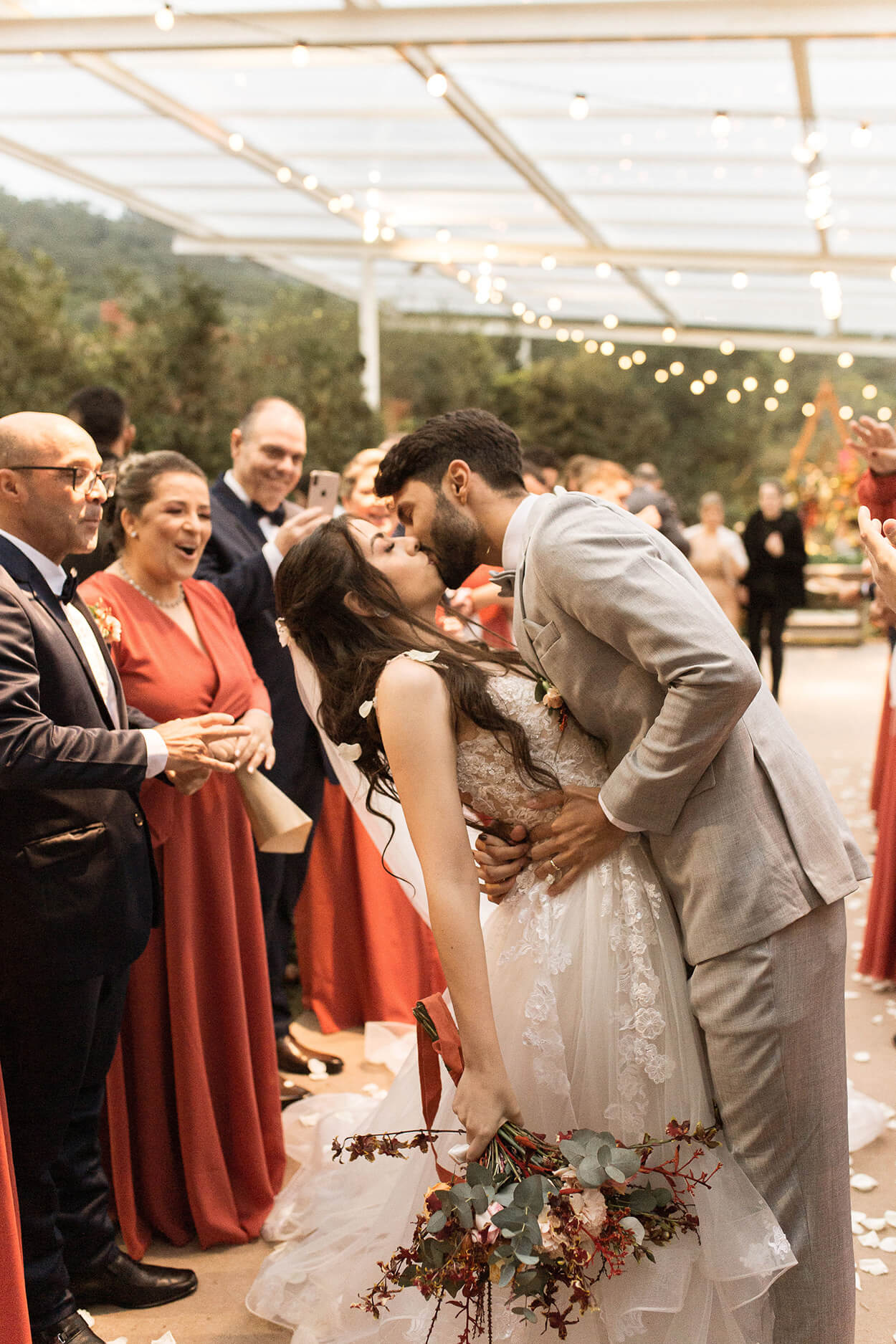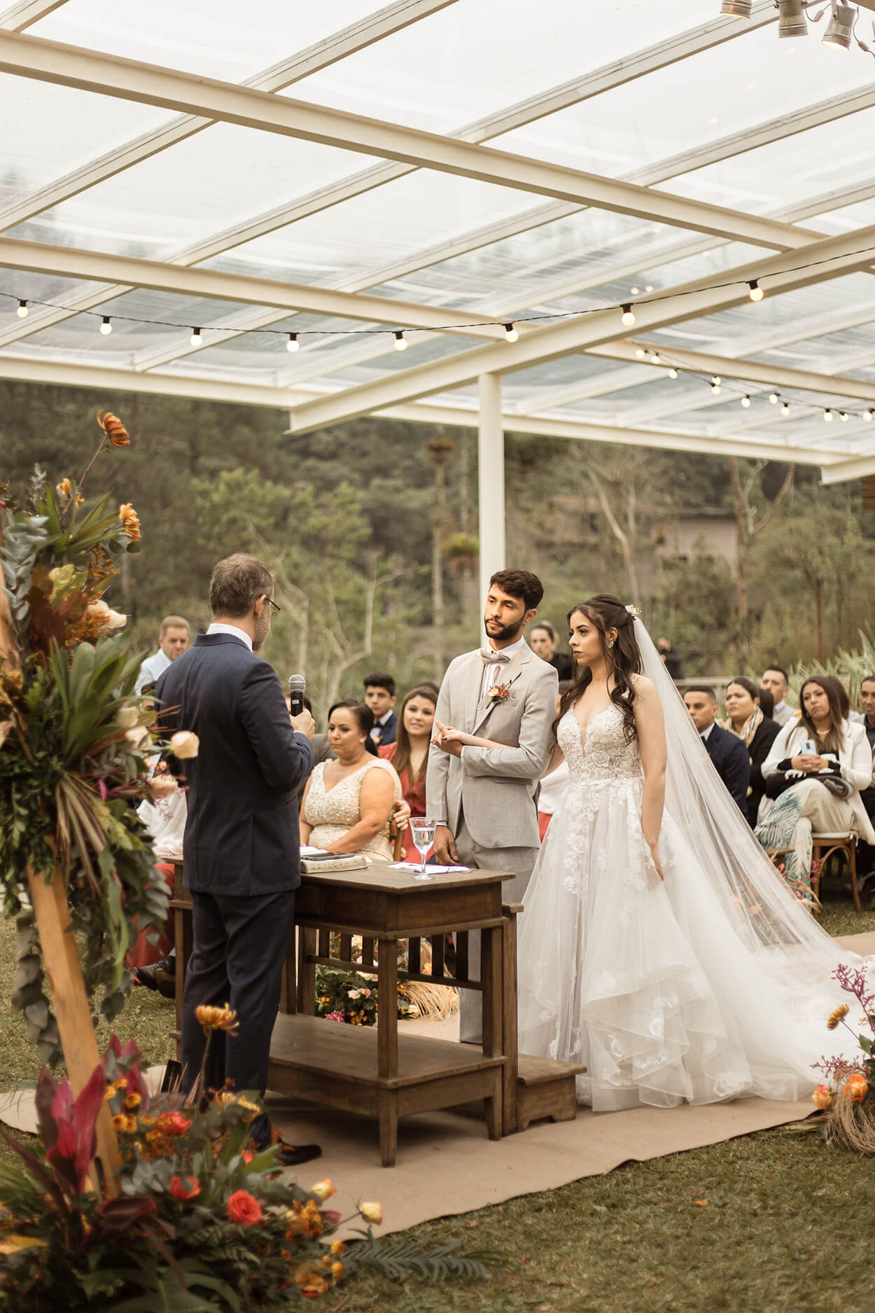 “E no dia do casamento fez muito frio, a máxima foi de 13º graus, mesmo assim o ambiente do plano B ficou perfeito e o clima deu um ar de casamento do exterior, isso marcou a todos.”