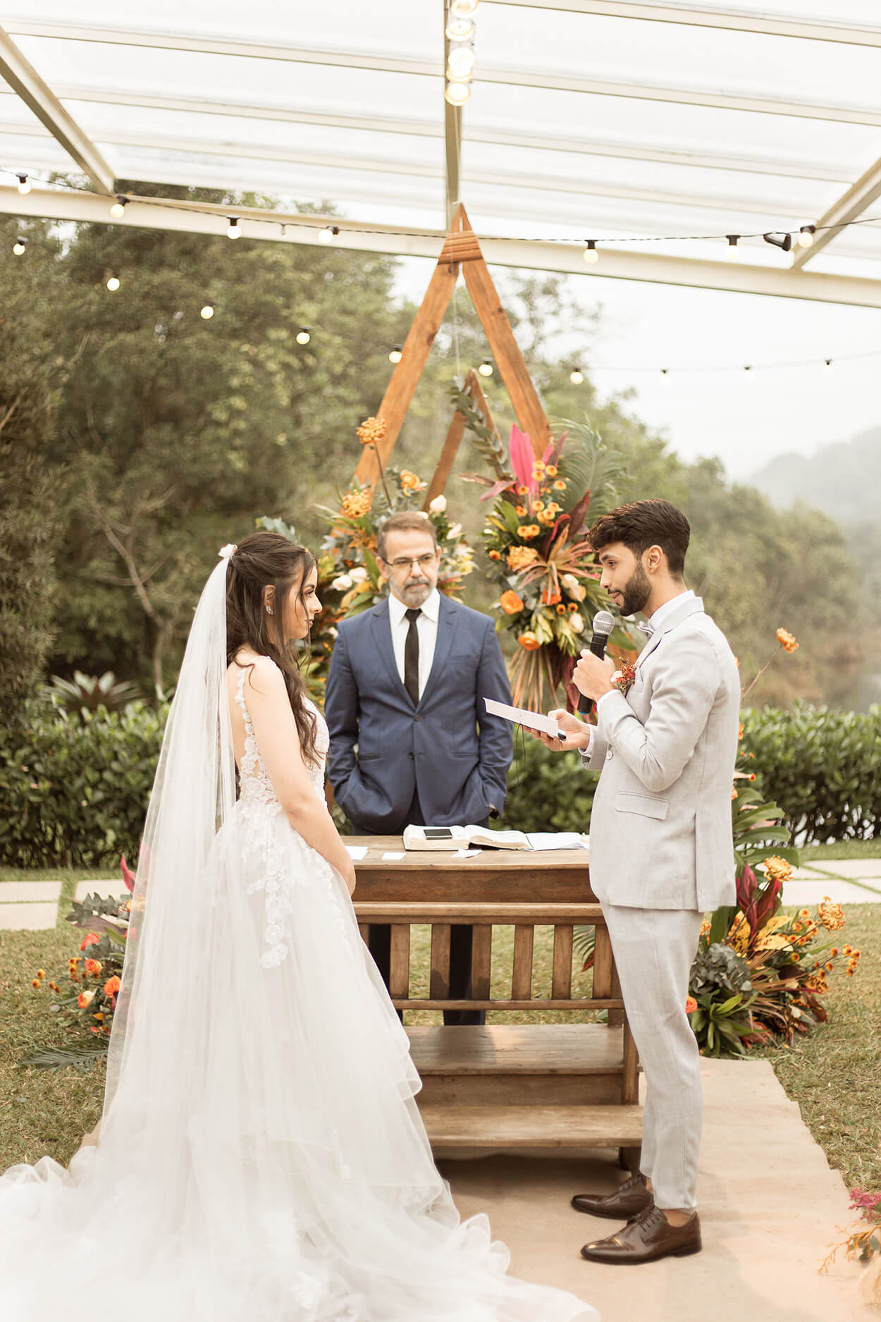 “Ao invés de fazer o First touch do jeito que havíamos programado, a nossa assessora Lu Valente Eventos mudou e fez um first look na cerimônia.