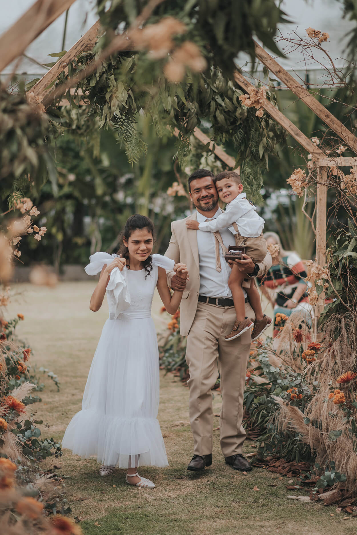 Os irmãos e o sobrinho fizeram a entrada da aliança ainda mais emocionante.