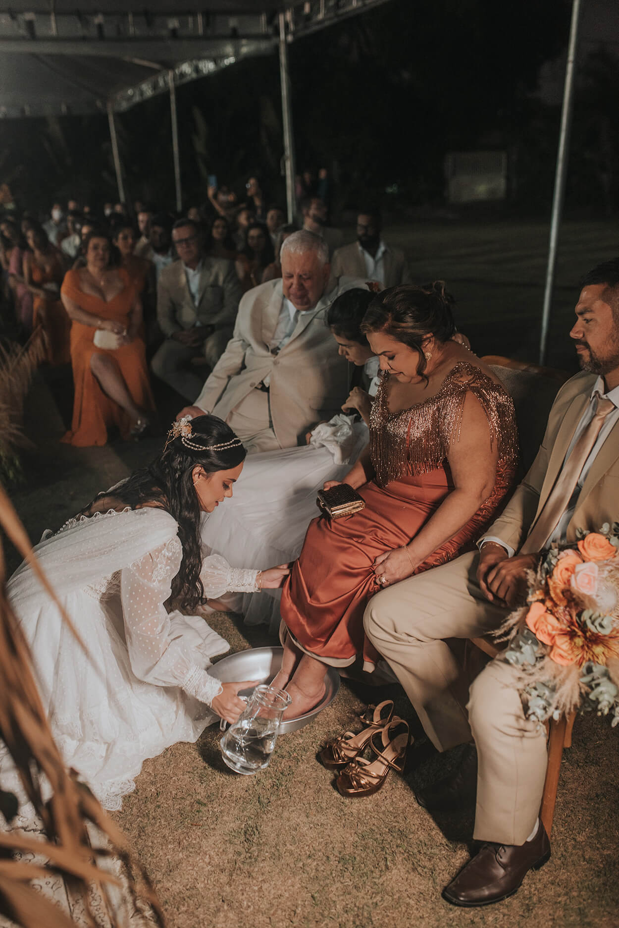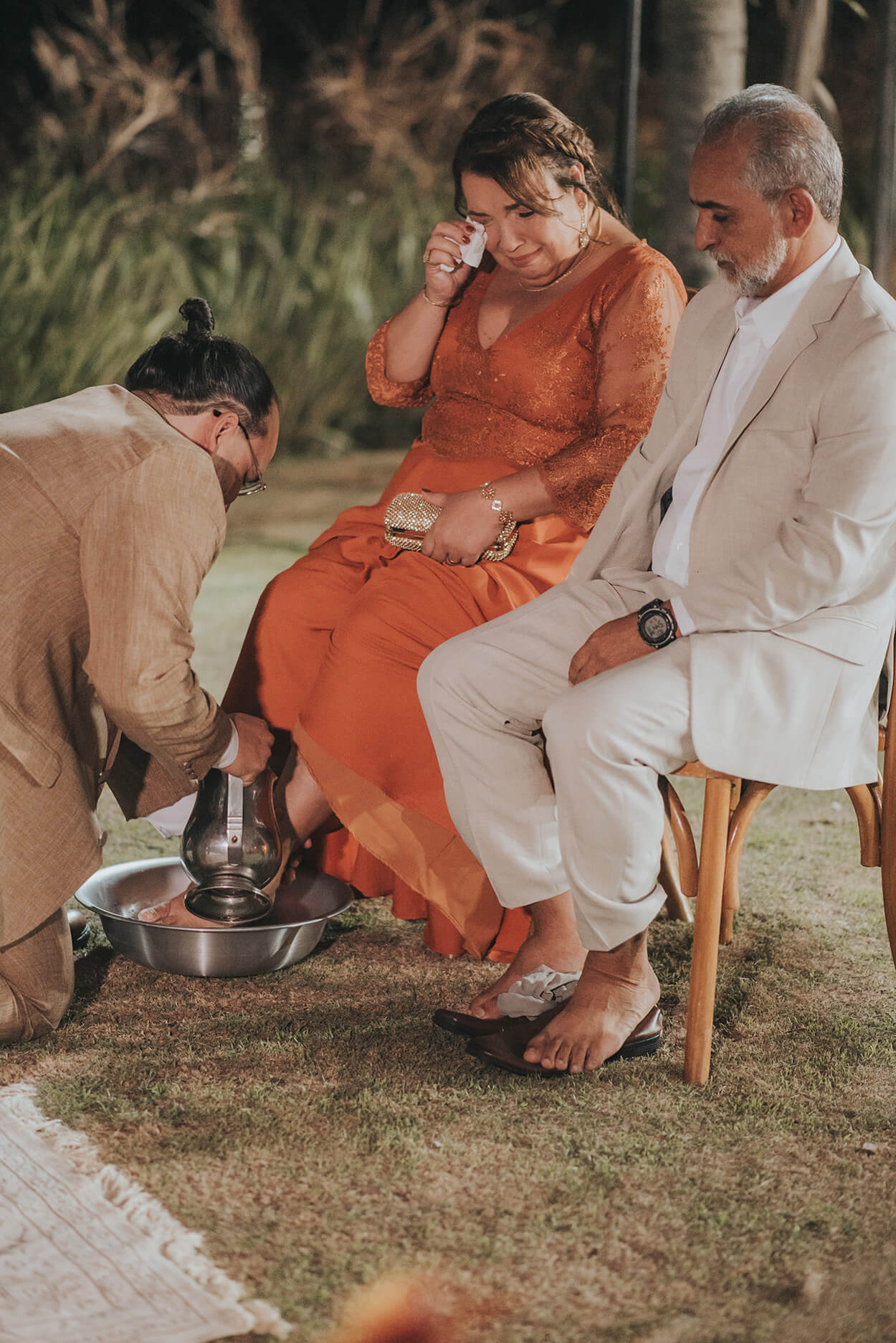 Ambos fizeram a cerimônia lava pés com os pais. “Como um ato de serviço e cuidado por aqueles que sempre nos serviram e cuidaram”.